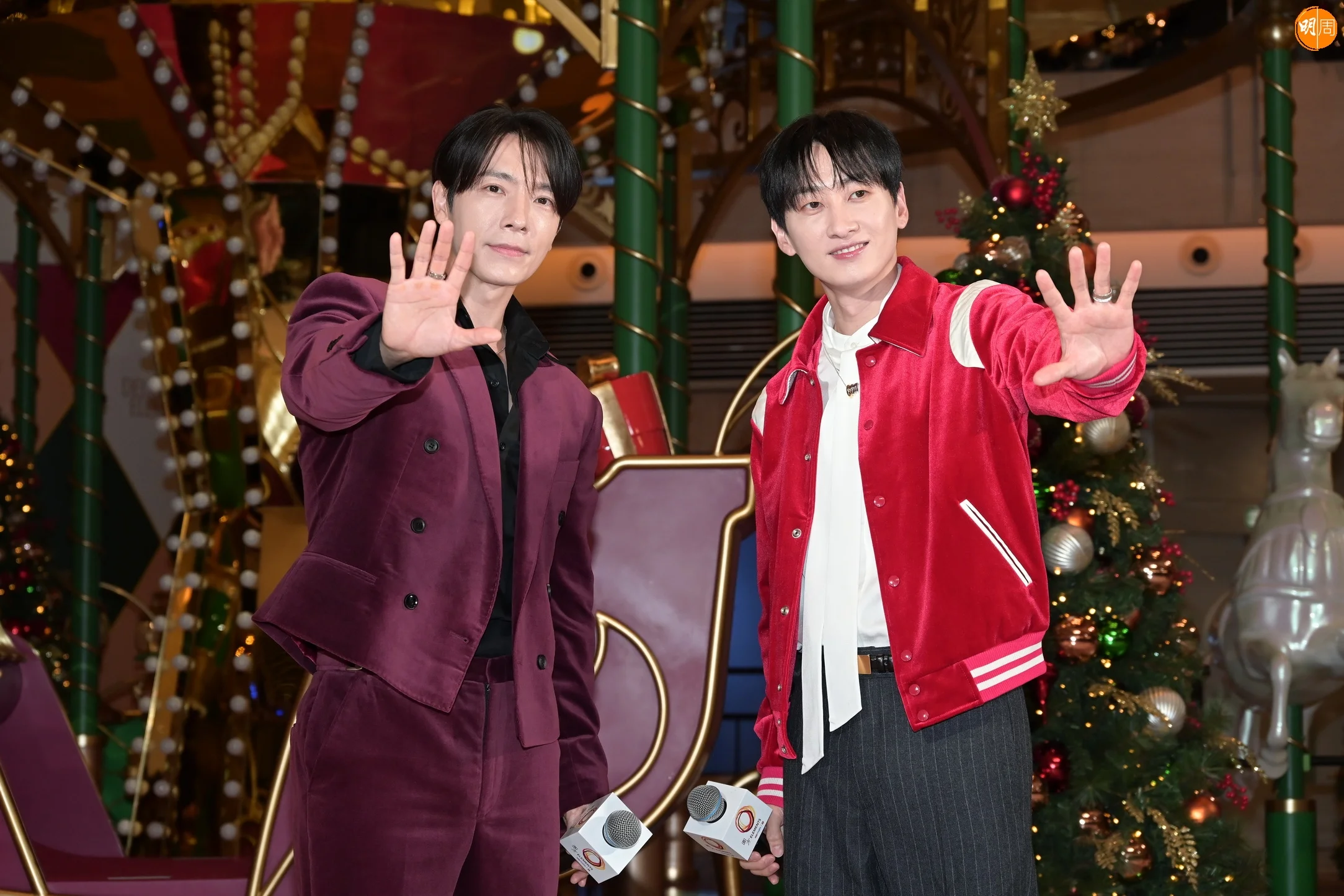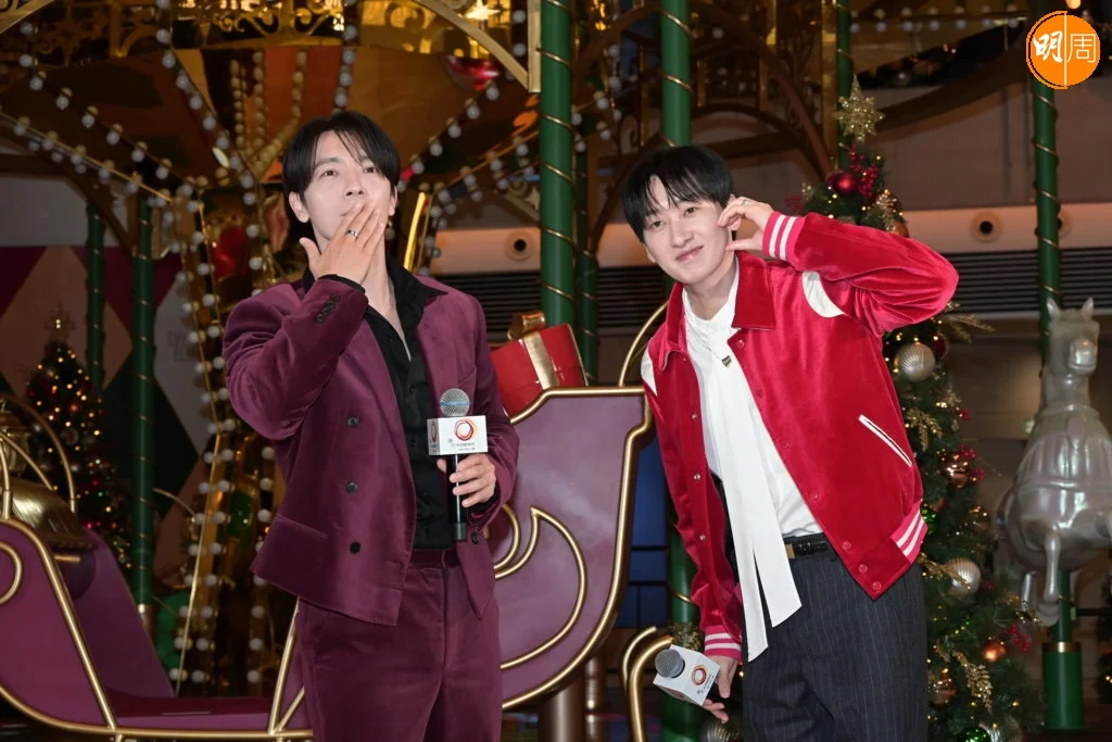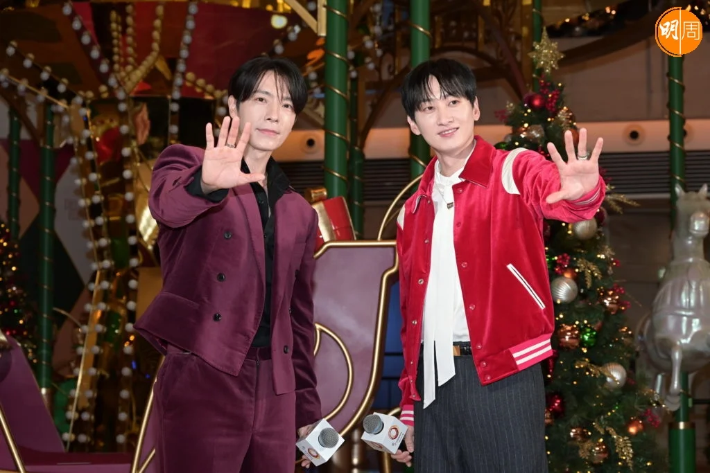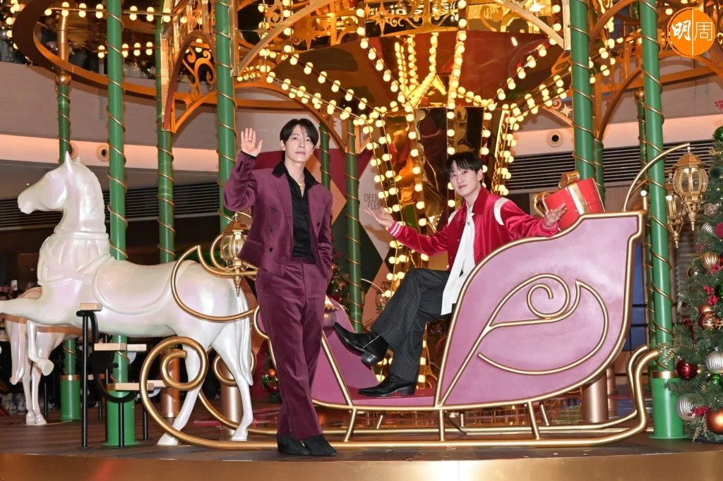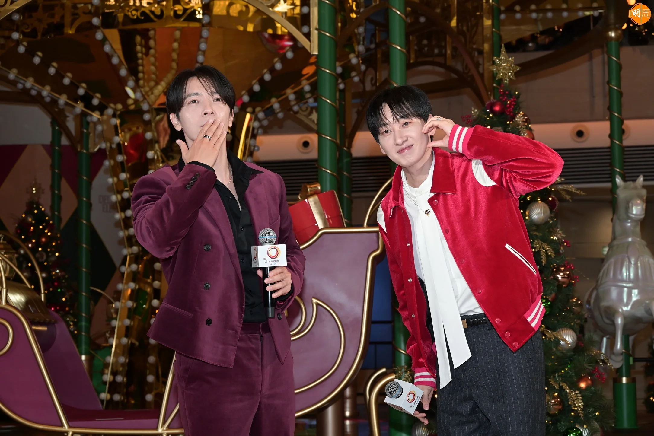 韓國男團Super Junior(SJ)小分隊Super Junior D&E兩位成員東海與銀赫,昨晩(9日)出席商場聖誕亮燈活動,兩人用廣東話打招呼又做出心心手勢及派飛吻。銀赫大讚商場很有聖誕氣氛,東海表示見到聖誕樹與燈飾,感到既開心又幸福。大會安排了3款地道美食,包括麵包布甸、叉燒包與雞蛋仔,他們即時學習以廣東話講出美食名稱,又試食雞蛋仔,然後用普通話大讚「好食」。談到明年工作大計,銀赫指SJ明年出道20周年,會與成員一起來港,東海透露有好多計劃,又會常常來港見粉絲,及抽空購物與品嘗美食,離開之前,兩人大嗌「我愛你」冧粉絲。