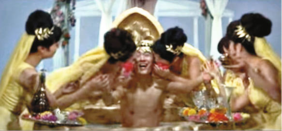 公映於 1968 年 1 月 28 日,即香港暴動才剛滅火。電影演了兩場戲之後,男女主角像童話中的 Gretel and Hansel 般走進了「森林中」的一座別墅,驚見華美衣服高牀軟枕應有盡有,男主角二話不說跳進泡泡浴中,伴隨而來,是美女如雲侍奉周到,開心得他出口成歌:「你別看我這模樣,我好比那唐璜,脂粉隊裏我縱橫,誰能比我強?我指東她不敢南,句句都聽我講。不信可以來試一番,我一定打勝仗!」