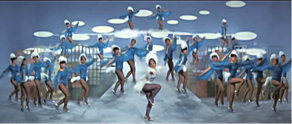 這些與劇情沒有直接關係的「連場歌舞」,肩負當年歌舞片中「歌舞劇團」的最大作用:極盡聲色之娛。哪怕在楚原的言志之作《紫色風雨夜》裏,導演藉「老師」駱恭之口,批評了「一朝得志」的學生謝賢:「⋯⋯未成名見到嘅都係窮人嘅血同淚,所以寫出嚟作品都係有血有肉,一旦成名,即刻發達,出入响上流社會,所見到嘅都係風花雪月,所以作品好容易流於庸俗,商業化,同埋浮誇。」