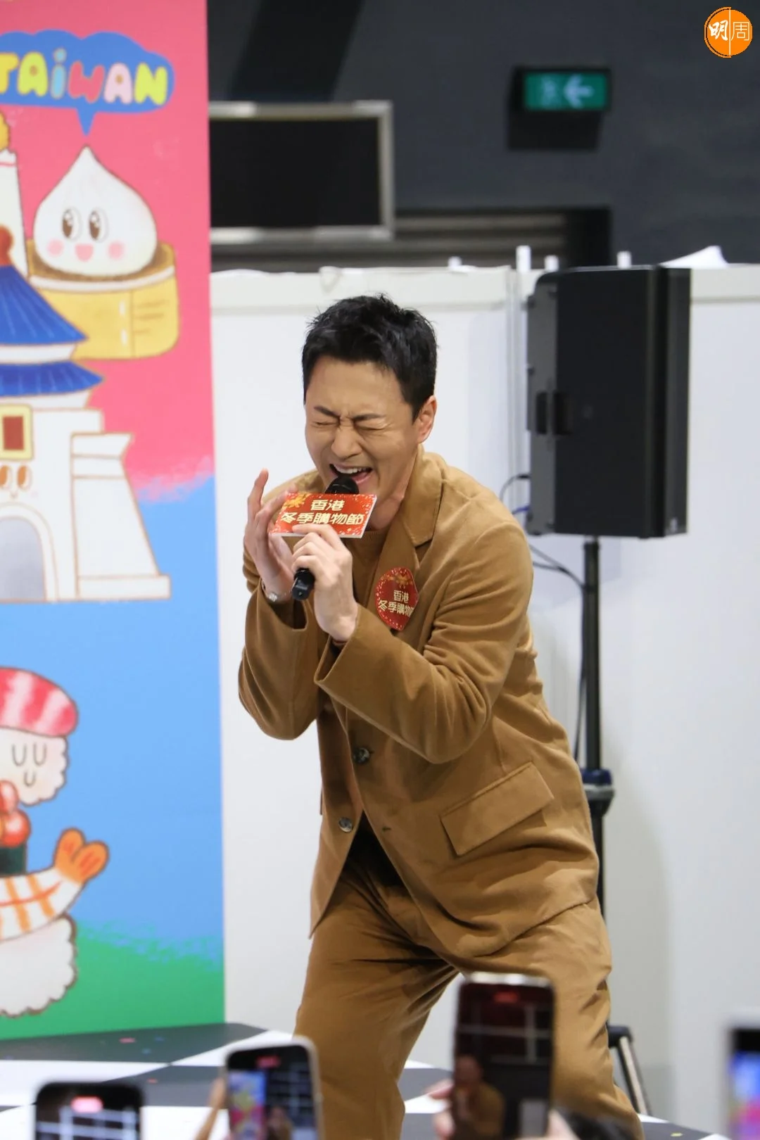 林峯邊走邊唱,並到每個角落跟觀眾握手,幾乎被人群掩沒的他,亦不忘提醒大家要小心安全,笑言:「俾條路我行!」