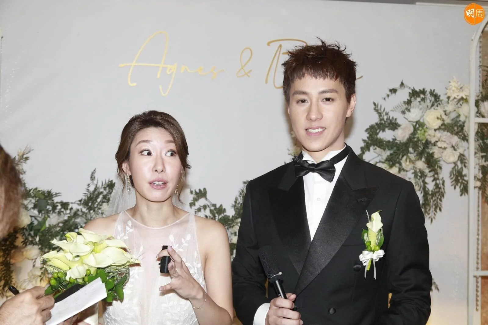 一對新人隨後接受訪問,林希靈幸福滿面,說道:「其實我哋都有喊嘅,係幸福嘅眼淚!之前七師傅話叫我哋牀頭擺指定方位,咁有利造人啲,所以今晚我會婉拒啲聖誕派對,因為要試吓啲風水方位。婚後老公要開劇,所以我同姊妹去Honey moon補數。」