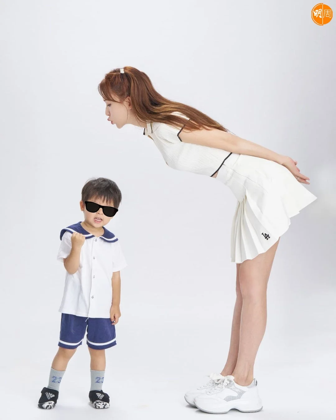 林志玲與日本老公黑澤良平(AKIRA)結婚5年,育有2歲囝囝Taiyou,去年生日,志玲曾曬過囝囝被圖案遮樣的全家福,今次Taiyou只被圖案遮眼,3張照片展露不同萌爆表情,甫士不輸索媽媽,更被指嘴巴似爸爸,2歲人仔身高已到媽媽的屁股。
