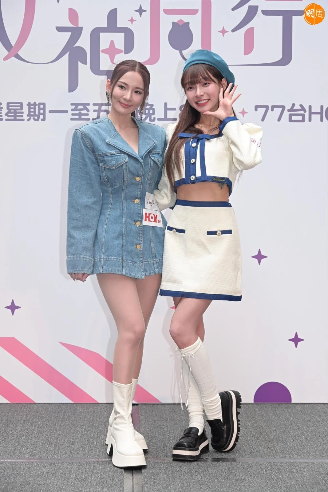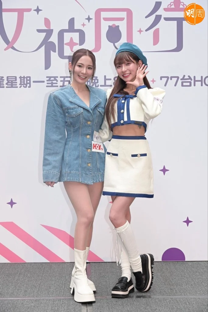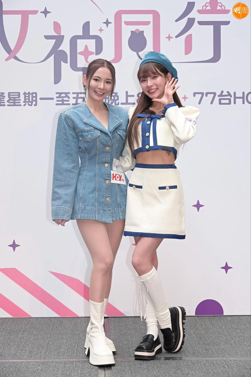 台灣女星林襄、林莎、慈妹、壯壯、雅涵、短今、陳怡叡(Yuri)、林可及苡萱,今天(20日)出席HOY TV新節目《女神同行》宣傳活動,與粉絲玩遊戲及自拍,場面熱鬧。林襄表示拍節目時,首跟兩位男主持阮偉倫和林躍翰見面,便帶他們「見家長」。她笑言︰「爸爸見我一次帶兩個男生回去,讚我很棒!」慈妹笑指林躍翰是其心上人,又指阮偉倫像她爸爸的女婿。