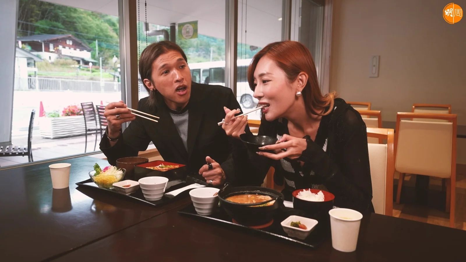 黃又南與梁允瑜今晚(3日)抵達上野道路休息站,上野村是被深山包圍的村鎮,周遭都是林木,所以特產是各式以木製成的器具。又南推介必試的豬豚肉,「豬豚」是由家畜母豬跟野豬公交配所生,並以大麥飼養。他們分別點了豬豚定食及十石味噌豬豚鍋,又南形容豬扒入口即融,笑言︰「無牙都可以食。」接住的甜品十石味噌雪糕,略帶鹹味口味獨特。另外,女主持「出浴」是繼「食玩」之外,拍攝旅遊節目的指定動作,今趟港姐出身的Chloe一連兩晚充任「性感擔當」,今晚晒事業線浸溫泉還不止,更出賣享受鏡頭背後的真實辛酸,熱到要上水抖氣。