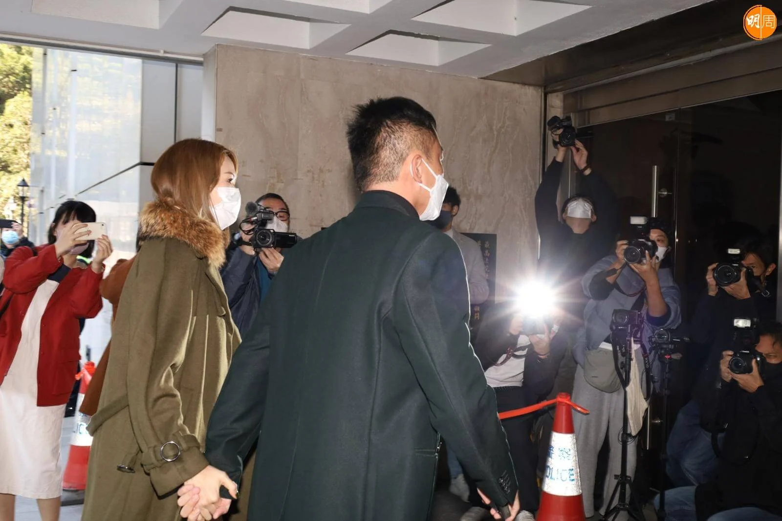 身穿西裝的楊明今早約9點在女友莊思明及家姊莊鍶敏陪伴下抵達高等法院。楊明當時被記者問到「驚唔驚坐監?」他沒回應,只直接步入法院。