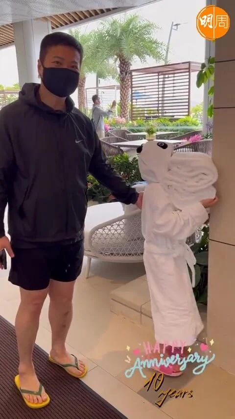 當年因為他們與「國寶」熊貓盈盈樂樂同名,故特意選在海洋公園內的熊貓館註冊,在熊貓女盈盈見證下,正式結為夫婦;亦是全港首對在熊貓館舉行婚禮的新人,極具意義,故帶同兩女一起重遊註冊地慶祝。