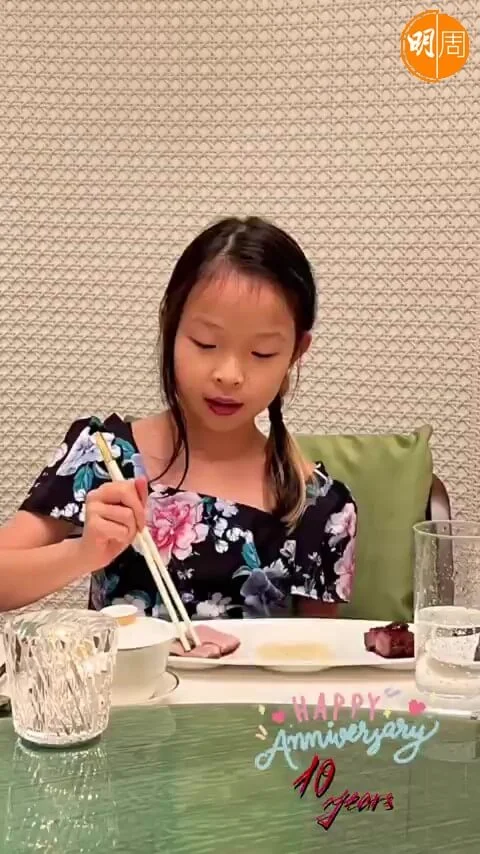 片段中一幕,是7歲的Kassidy穿上熊貓浴袍,雙手捧首一堆毛巾遮去視線,不斷地撞牆,最後要嘉樂出手引囡囡回正軌,非常搞笑,跟爸媽一樣充滿喜劇細胞。