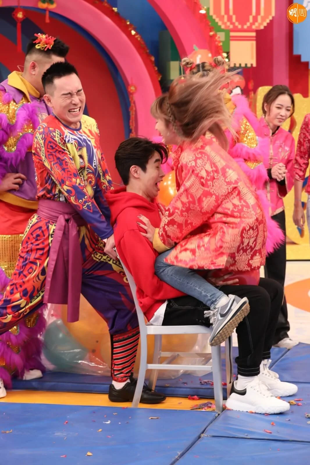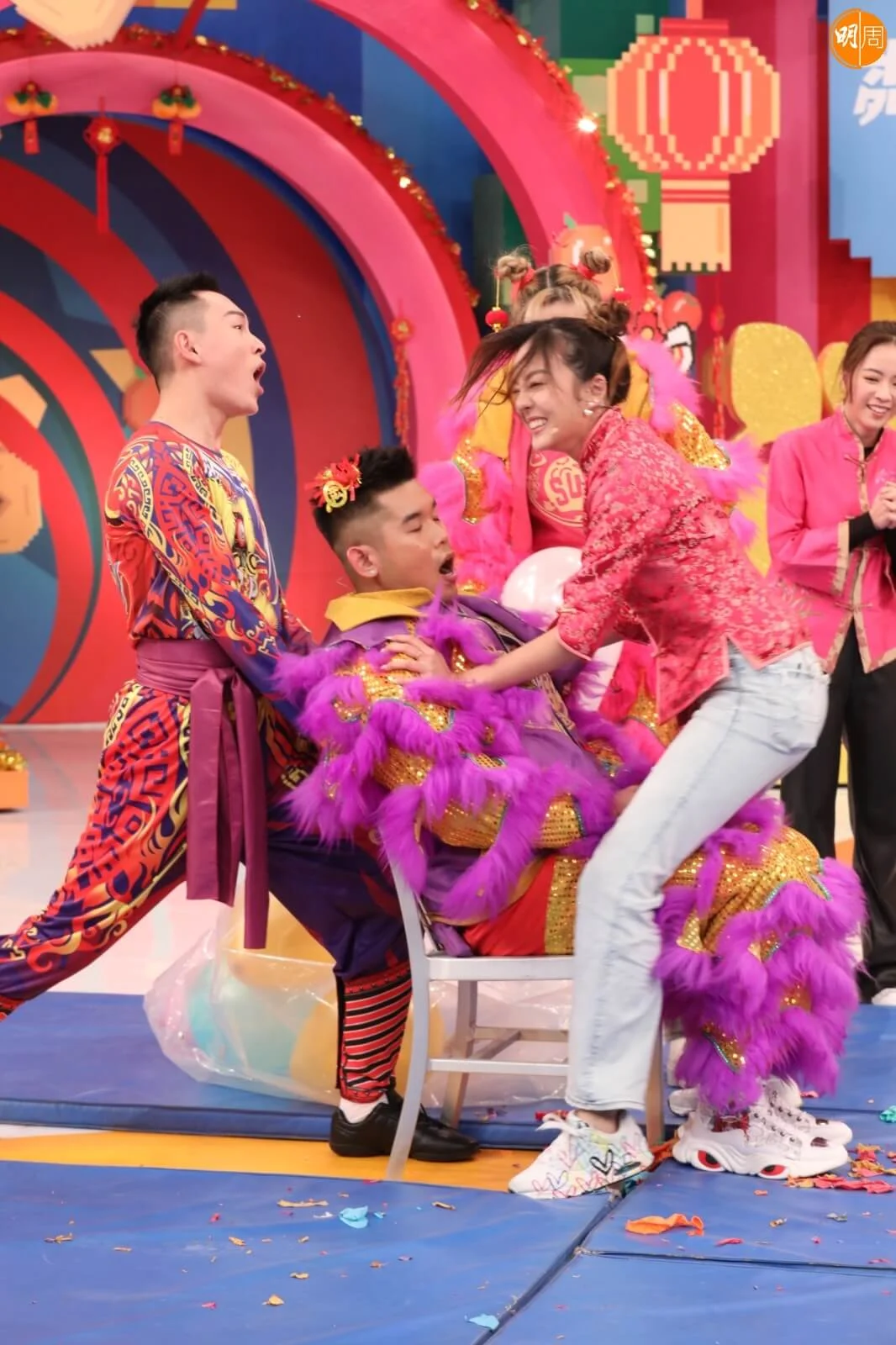 面對「鑽石級女神」大駕光臨,在場男士也瞬間變「怕醜綿羊仔」;當進行「坐波波」環節時,負責夾實氣球的Sean與Timothy一埋位已面青,超蓮忍唔住呻:「做咩啫?!我依家好恐怖咩?」話口未完,獎門人忽然無預警衝前坐爆Sean大腿上的波,為超蓮這位VVIP作親身示範,受「重創」的Sean即嚇到魂魄唔齊,Timothy見狀亦驚到牙都震……其間,玩得投入的超蓮來回跑跑跳跳,搞到索晒氣兼大嗌「腳軟」,此時獎門人再「怒坐」Timothy向超蓮傳授秘技。