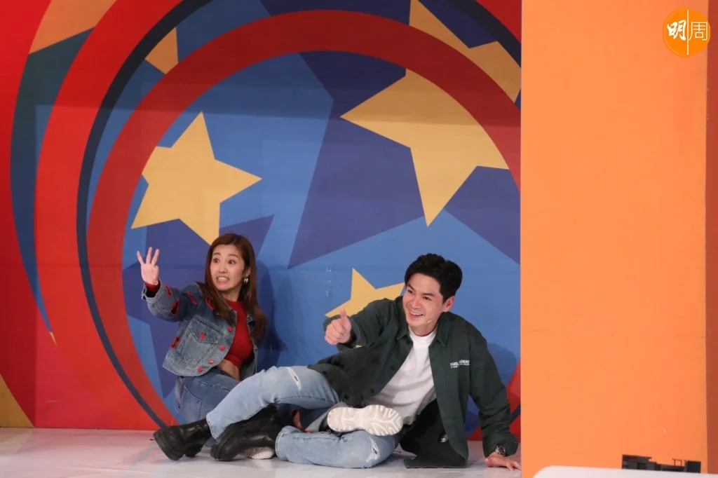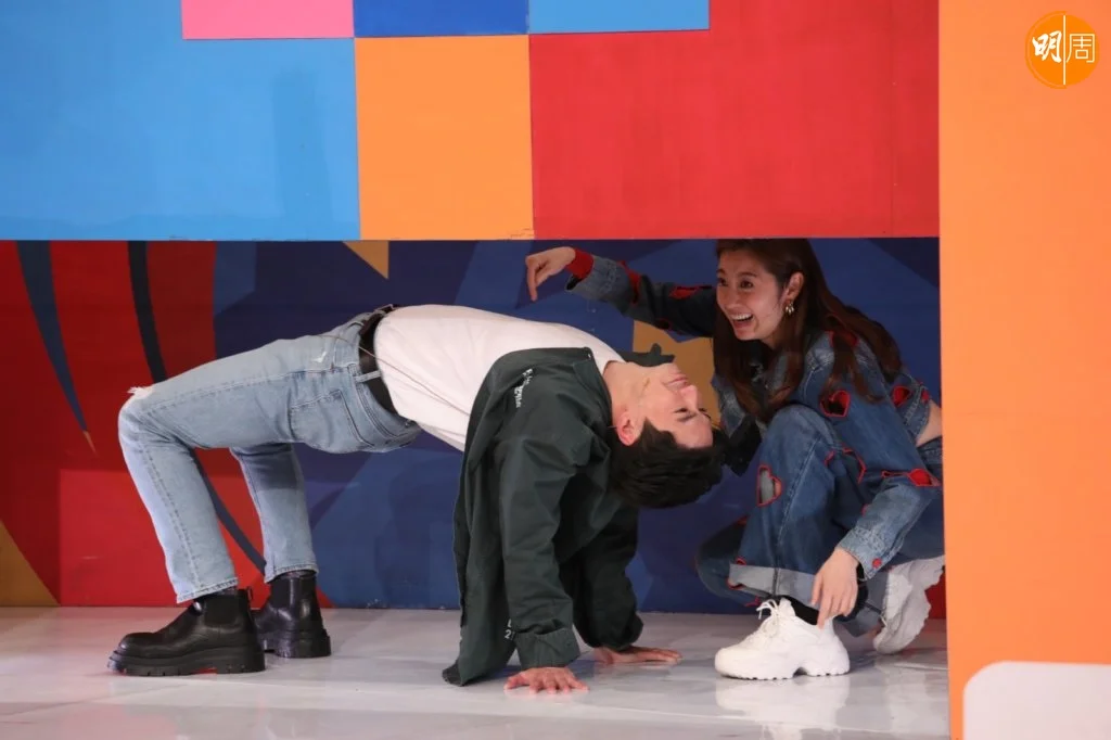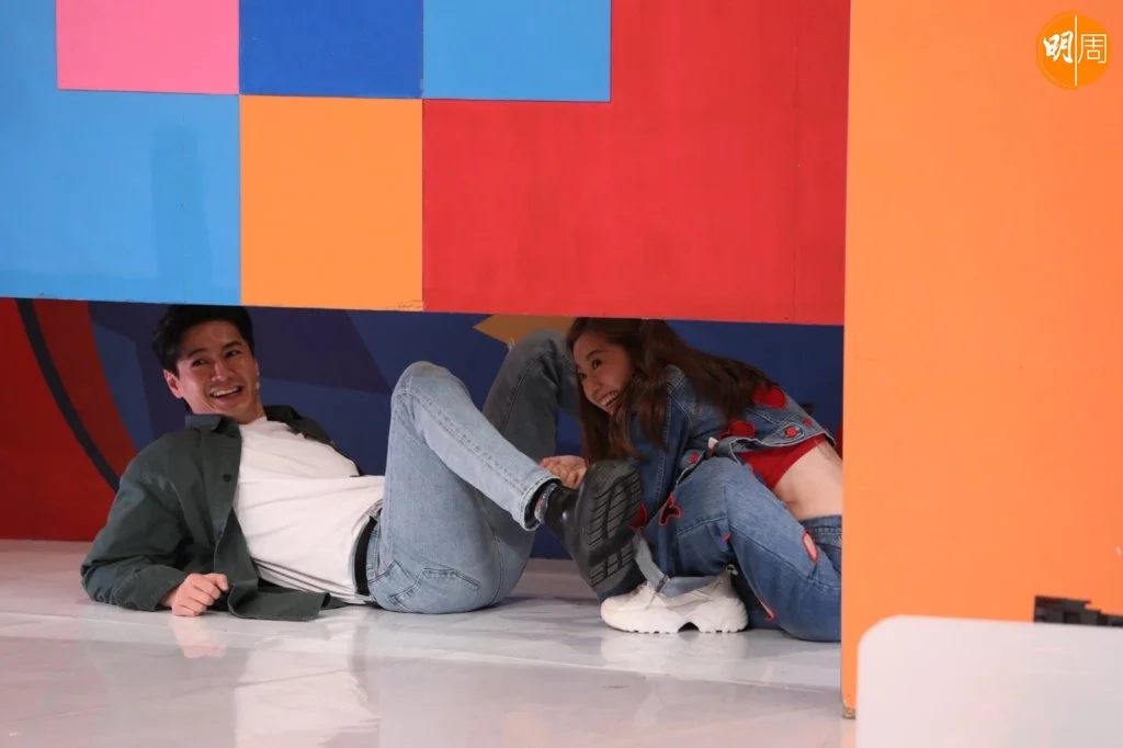 Yoyo和子溢在「開心無敵落大閘」大晒好演技,戲裏戲外同樣合拍,先是上演「親熱戲」,之後子溢力王上身向Yoyo使出公主抱,然後再四腳交纏演繹「鉸剪腳」,最後子溢腿張開扮生BB,玩得非常落力。