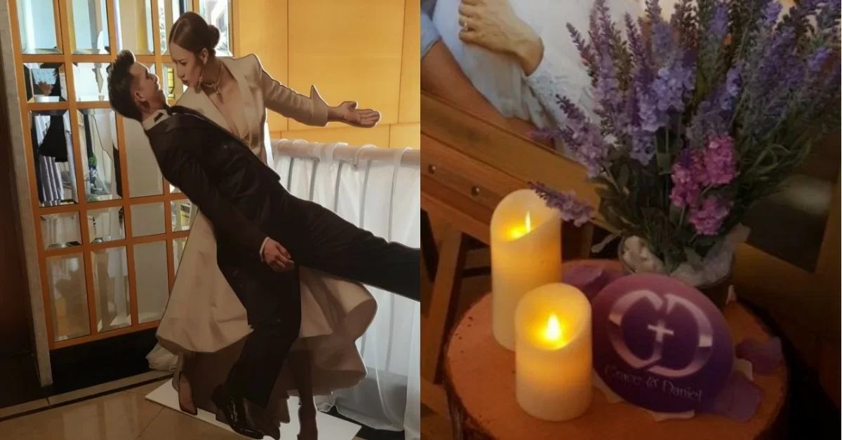 31 歲的王君馨(Grace)與圈外男友 Daniel 今日(7月11日)在香港舉行婚禮,今天更是他們二人相識 12 年的紀念日,別具意義呢!從照片可見,場地以紫色為主要佈置色調,四處可見以紫色氣球和鮮花。另外,Grace 透露今次為婚禮而設的「GD」圖案特地找來韓國設計師主理, 除了因為 Grace 和 Daniel 剛好湊成 「GD」,也與自己喜歡韓星 G-Dragon 有關。