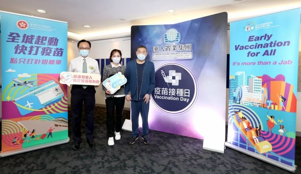 劉鑾雄(大劉)與陳凱韻(甘比)今天出席某集團舉行的疫苗接種日,接種復必泰(BioNTech),而大劉大女劉秀樺(Josephine)更罕有現身,成為全為場焦點。