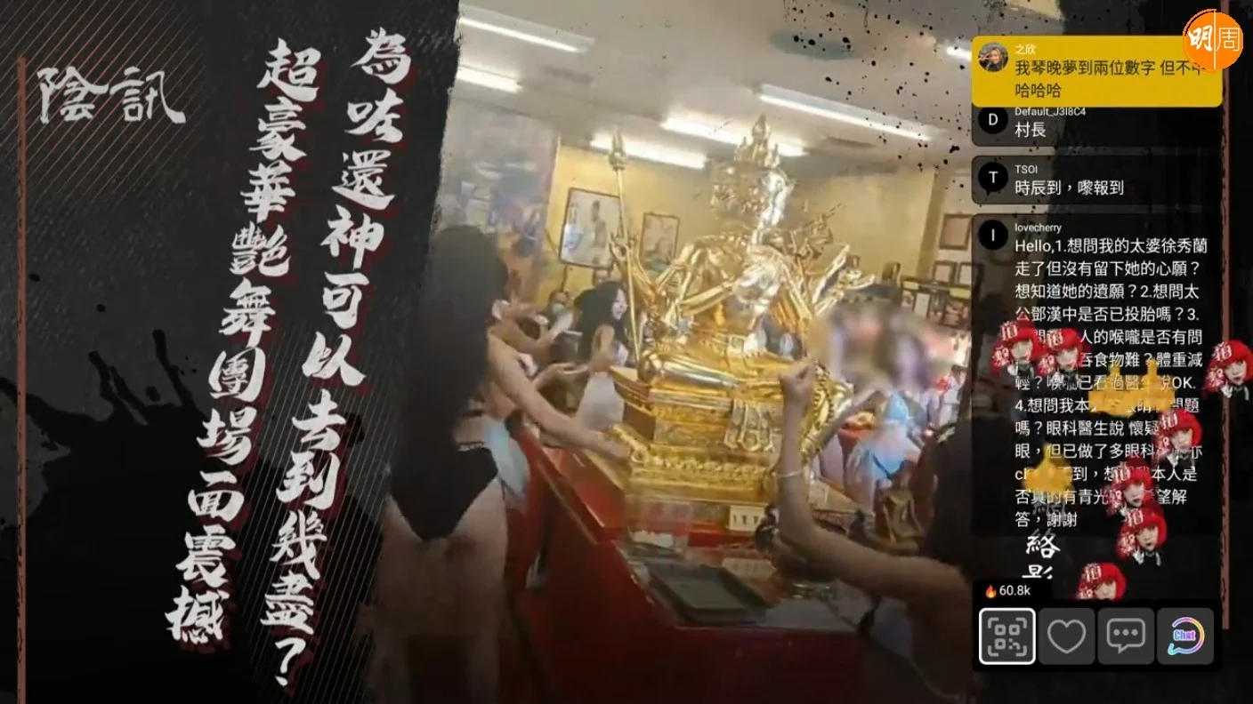 此外,主持黃紫恩(Jojo)陰訊中報道台灣有一座四面神像,據知早前有善信請來50多位穿上比堅尼的辣妹在神像前跳舞還神。梁思浩接住提到早年流傳狄波拉亦曾以類似方法,在泰國四面神還神,他說︰「我諗最先由一位香港名人;謝霆鋒媽咪拉姑(狄波拉)開始,佢求咗之後話如果靈驗就跳舞。我依家幫拉姑澄清,佢從來冇喺四面神面前除衫跳舞,佢就咁跳啫。」他補充現在還神方法是送大笨象造像,接住他又爆料話網民早前都影到古天樂親身到泰國拜四面神,並送4隻人型大小的金色大笨象。