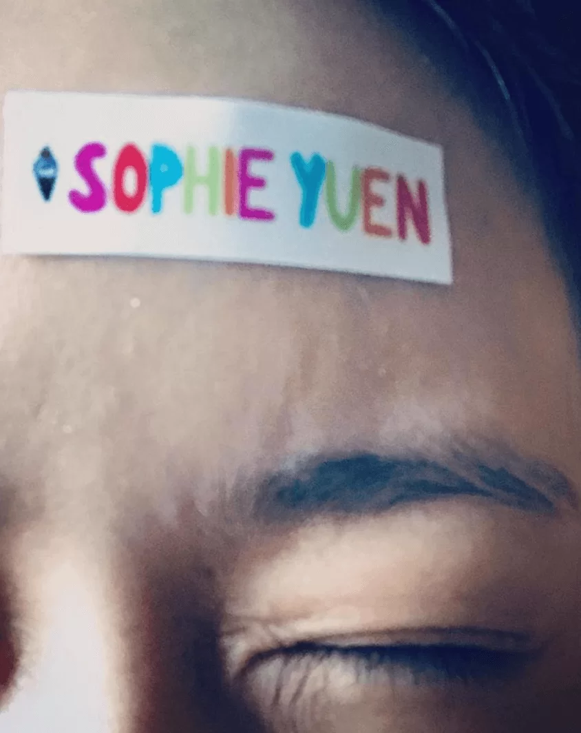 林嘉欣近日與老公袁劍偉忙於準備拍攝《死因無可疑》,工作日程雖然緊湊,但疼惜一對寶貝囡囡的嘉欣,仍會抽時間陪伴她們。這一天林嘉欣拍戲拍至凌晨,一覺醒來,額前多了一張「Sofie Yuan」貼紙,不問可知是Sofie 的傑作;原來精靈活潑的Sofie不時會整蠱媽媽,林嘉欣對於女兒的可愛玩意,感覺「冧孜孜」,在社交網站貼文分享,嘉欣留言:「每次Sofe出門都偷偷貼貼紙在媽媽的背、屁股、包包、行李箱」。或者這些代表了囡囡對嘉欣的愛意。