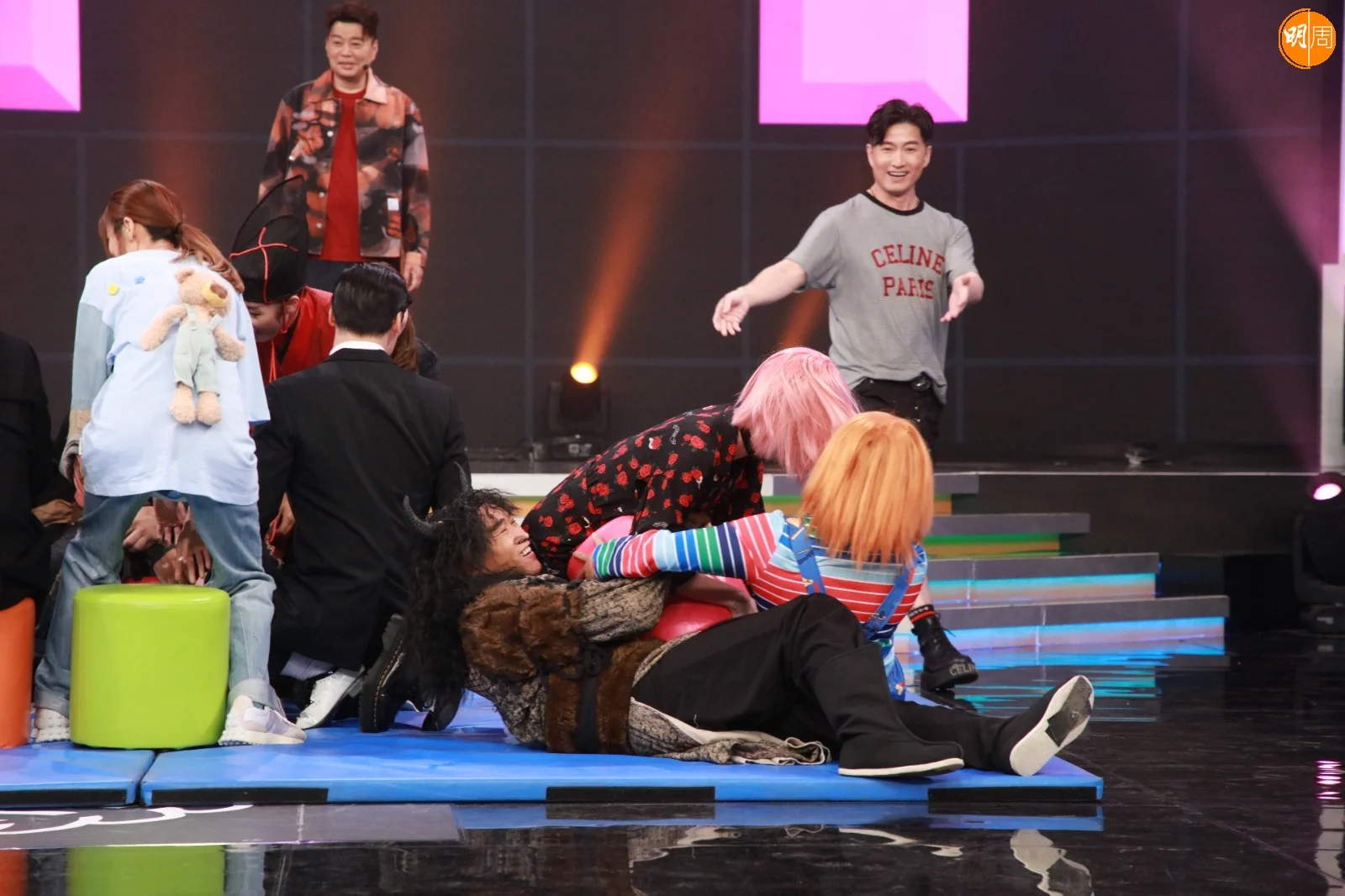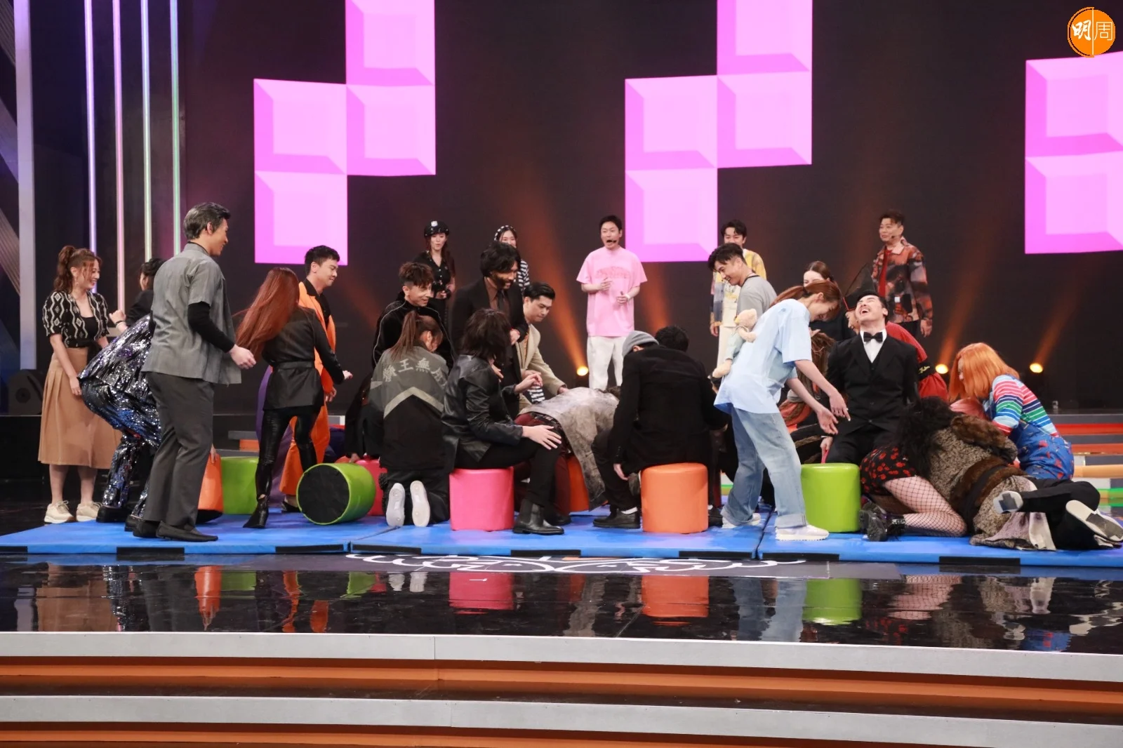 首個遊戲「福祿壽 搶著數!搶櫈仔!」場面熱鬧,第一Round已經有逾20人一同上陣爭櫈仔,音樂聲一停大家便蜂擁而上撞到一仆一碌,玩得落力的Gordon葉泓聲更激到爆呔,十分搞笑。之後的「扭扭擰擰福祿壽」挑戰大家腰力,玩法是各隊派出一人上演1對1Battle,兩人要穿着特製彈弓腰帶後並需於限時內瘋狂扭腰務求盡快得到鎖匙。身材Fit爆的朱朱原來腰力驚人,對戰伍韻婷時猶如裝上摩打般扭動蛇腰,以絕對實力秒殺伍韻婷,朱朱風騷地說:「我平時好鍾意玩呼拉圈㗎!」