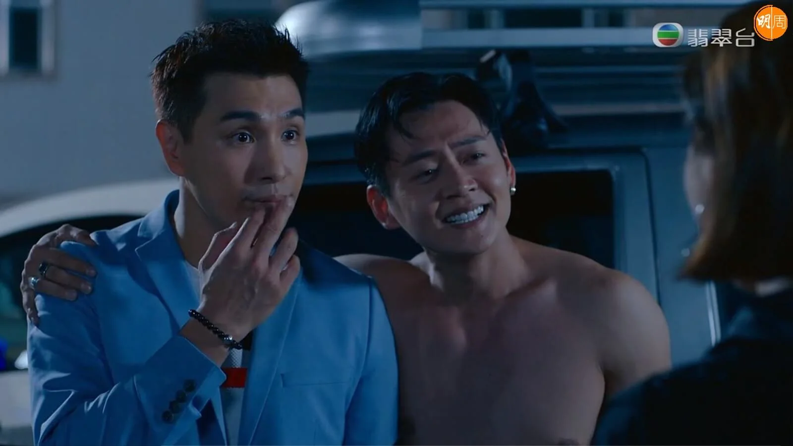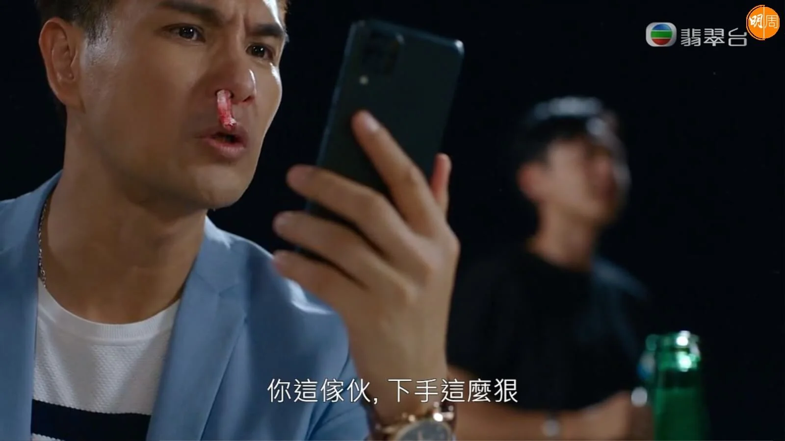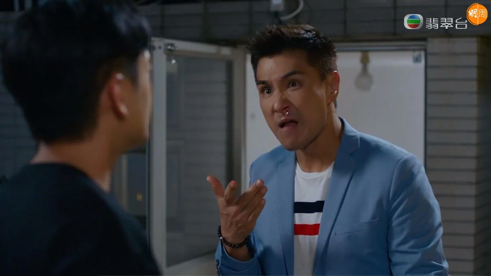 無綫劇集《童時愛上你》昨晚播出第六集有笑有淚,當中Charlie(陳展鵬飾)為了單戀的雷紫彤Amanda(高海寧飾)上演搞笑的爭風呷醋戲碼,Charlie不爽Ding哥(張振朗飾)沒有保護好彤彤導致其失蹤,彤彤又處處維護Ding哥,Charlie一時火遮眼怒打Ding哥;Ding哥就趁彤彤不在時玩「報仇」,打到Charlie流鼻血。