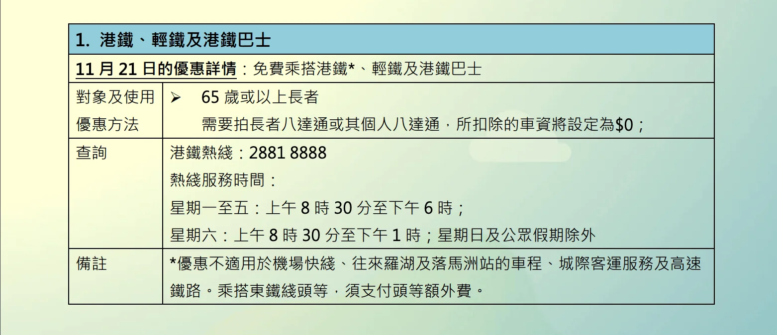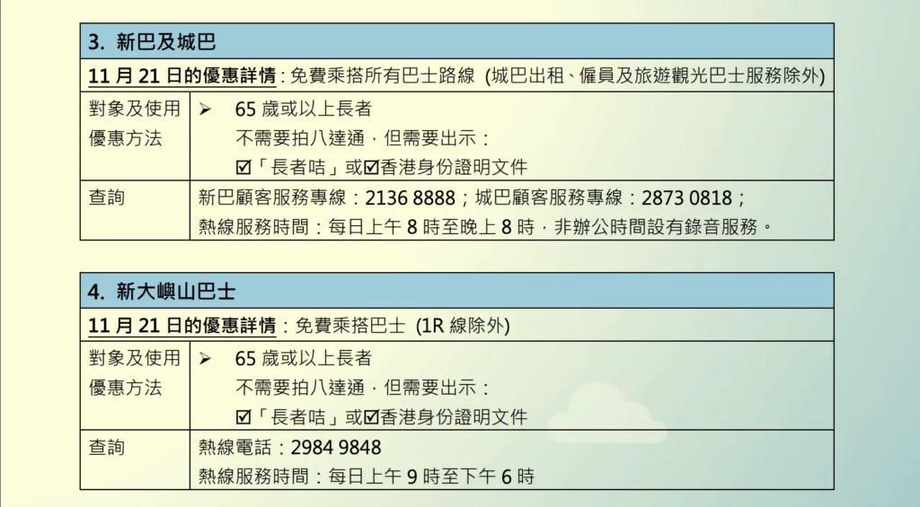精明生活|11月21日長者尊享免費交通 多個文娛旅遊景點提供優惠