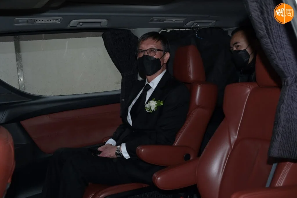 張婉婷(左)登上靈車,伴隨靈柩前往火葬場。