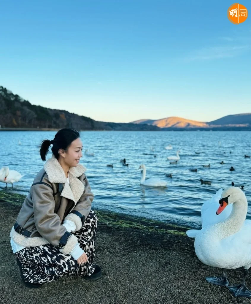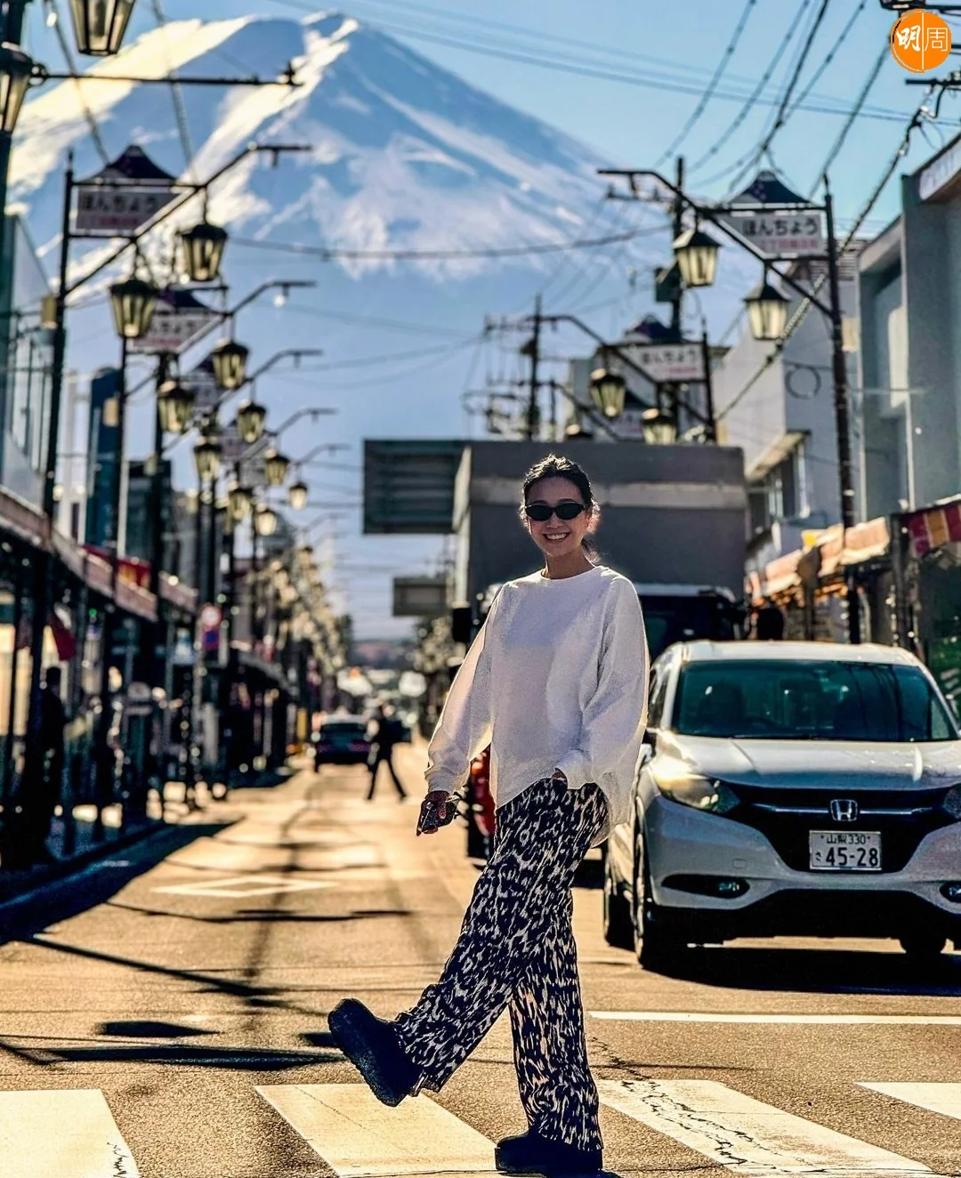 孭住名牌手袋的心穎,在日本欣賞楓葉及富士山靚景,並留言大曬日文,「富士山,能見度 10/10分,滿足度 11/10分」。容光煥發的心穎,亦貼出多張在富士山前留倩影的靚相,老公泥鯭充當御用攝影師,為老婆拍照,其中一張她與老公泥鯭的背影合照,溫馨又恩愛。