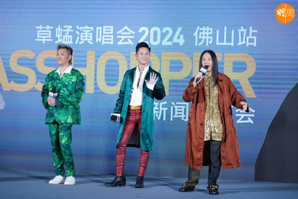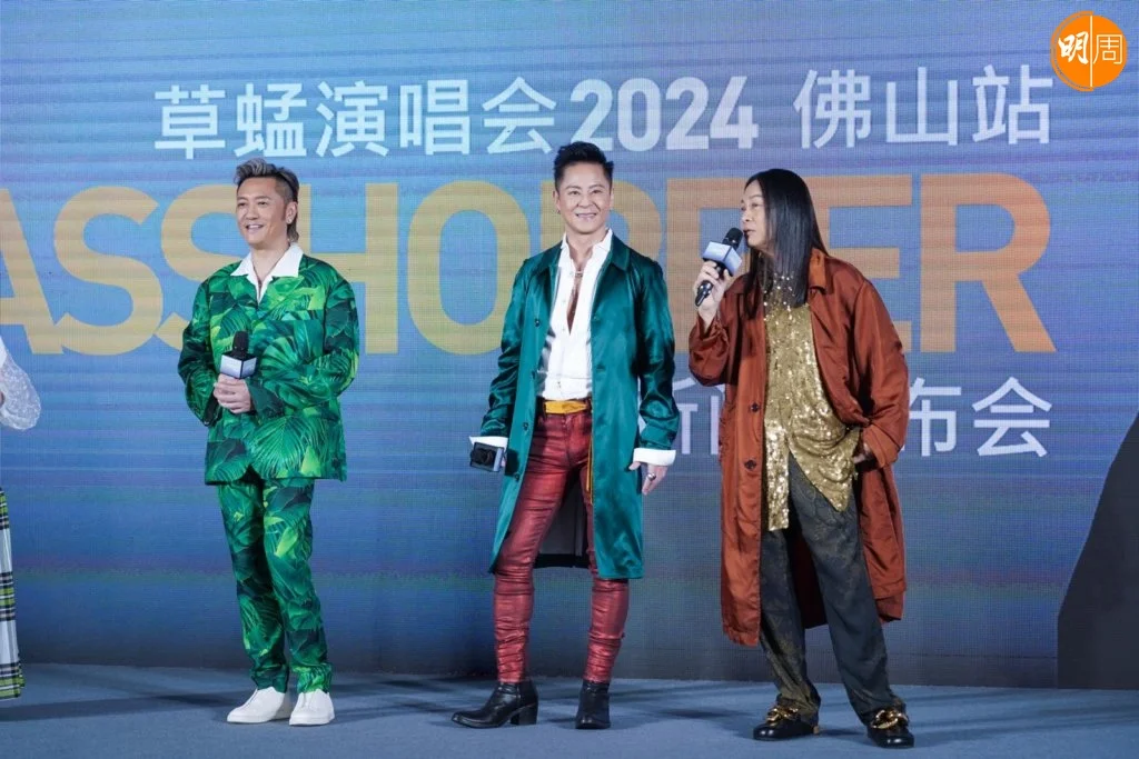 草蜢將於8月17日假佛山國際體育文化演藝中心舉行《RE:GRASSHOPPER草蜢演唱會2024》,日前三子現身佛山舉行記者會,來自各地歌迷和媒體捧場。活動前他們率先親身到祖廟地鐵站為演唱會應援布置簽名和打卡,期間被歌迷捕獲,合照留念。
