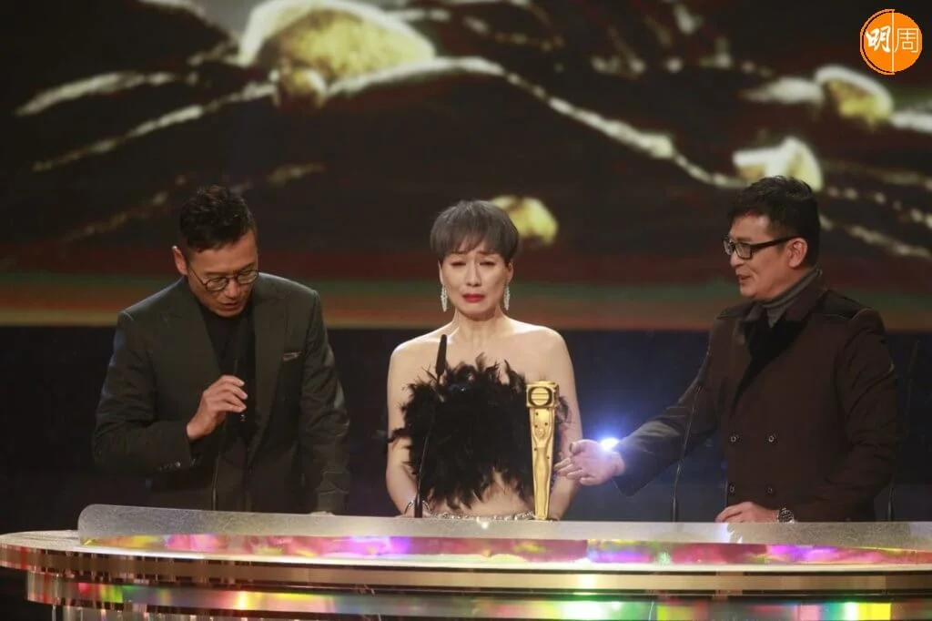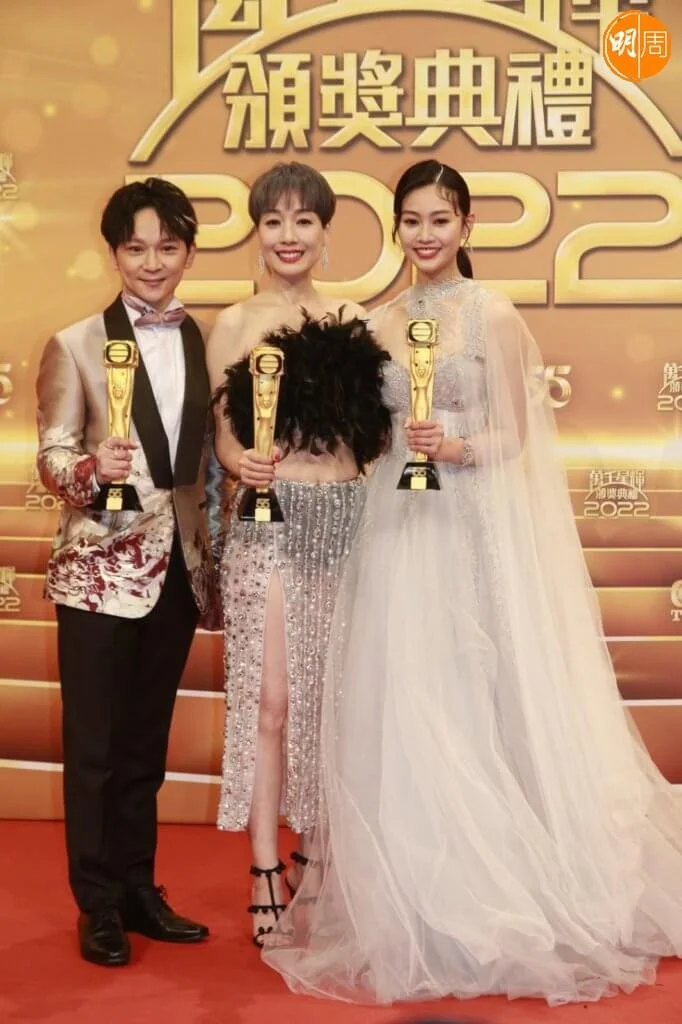 今晚《萬千星輝頒獎典禮2022》的視后,賽前被視為陳煒和江美儀之爭,結果「最受歡迎電視女角色」爆冷由三太樊亦敏奪得,而最終的視后「最佳女主角」由江美儀奪得。她一上台就哭成涙人,「以為自己不是親生女得不到這個獎。」,更跟同是來自亞視和今次對手陳煒說:「我哋好爭氣。」,另外又提到今次拿到四張飛給父母到現場親自見證,「上次拎最佳女配角他們沒來,好遺憾。」