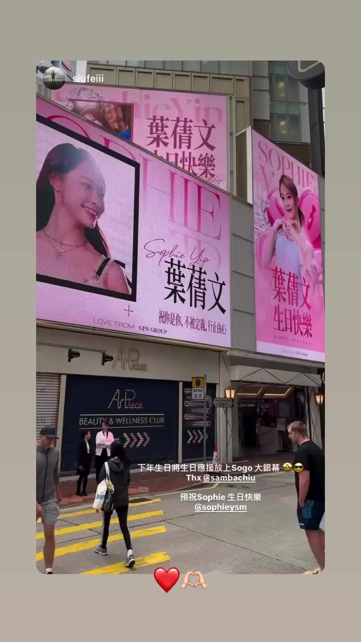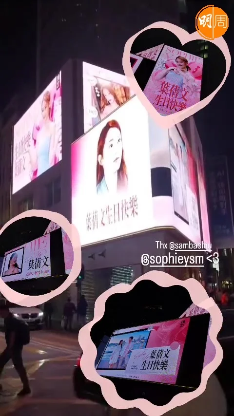 另外Sophie還上載一班粉絲集資給她買的戶外大型電視屏幕及生日應援燈箱片段,令她非常感動,但都要等她跟GM享受完甜蜜之旅後,才能到場打卡。