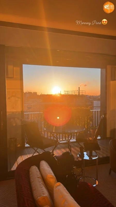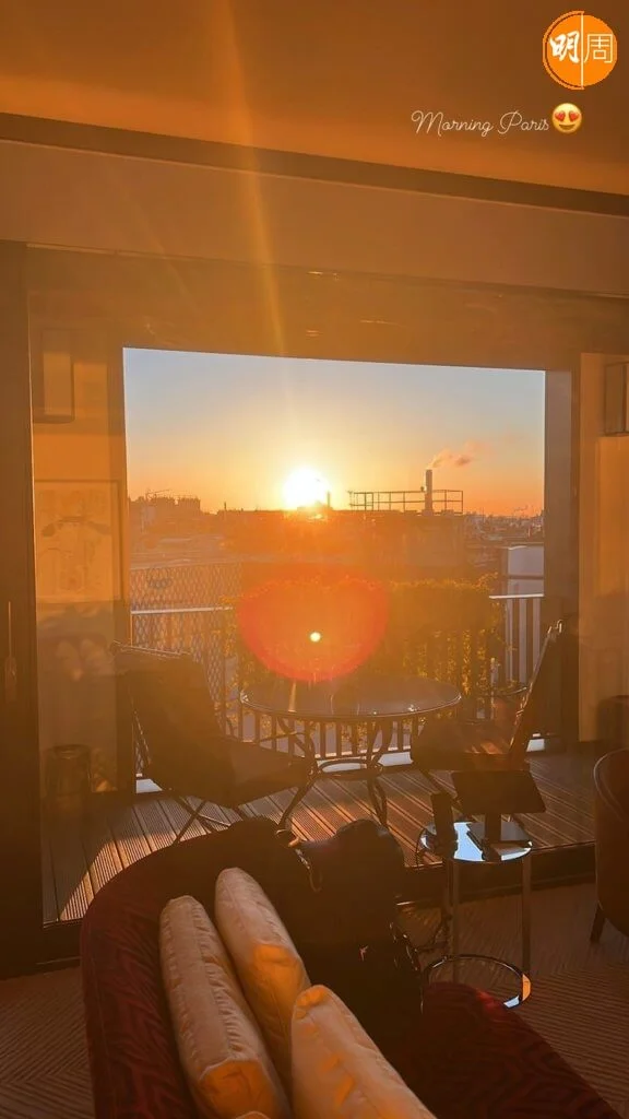 阿Sa於出發前在社交網分享其機場OOTD,以白色衛衣配休閒長褲,獲網民都大讚「好美」,並謂「期待更多靚相」等;阿Sa留言:「真係太耐冇坐過長途機 #未出發先興奮。」還在限時動態分享在飛機上補眠,及抵巴黎後在酒店向窗外拍的晨光照。