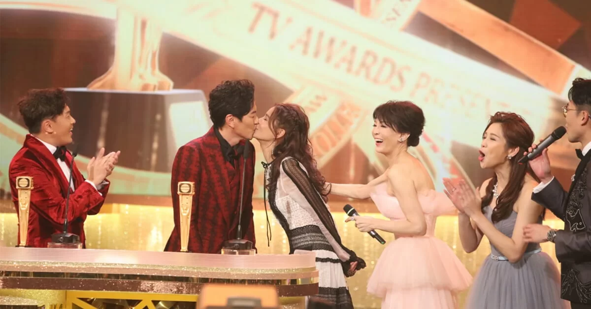 之後二人更在主持陸浩明要求下,在熒幕上親吻。而回到藝員席時,二人都各自被男女藝員圍繞恭喜,田蕊妮更開玩笑說現場有很多戒指,叫阿蕭即席再求婚。