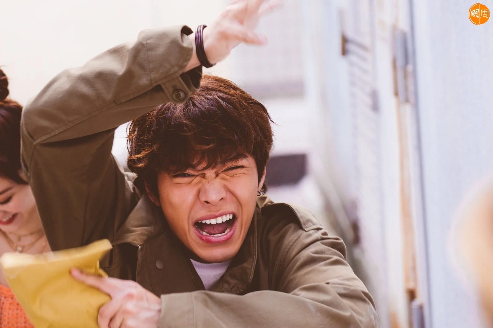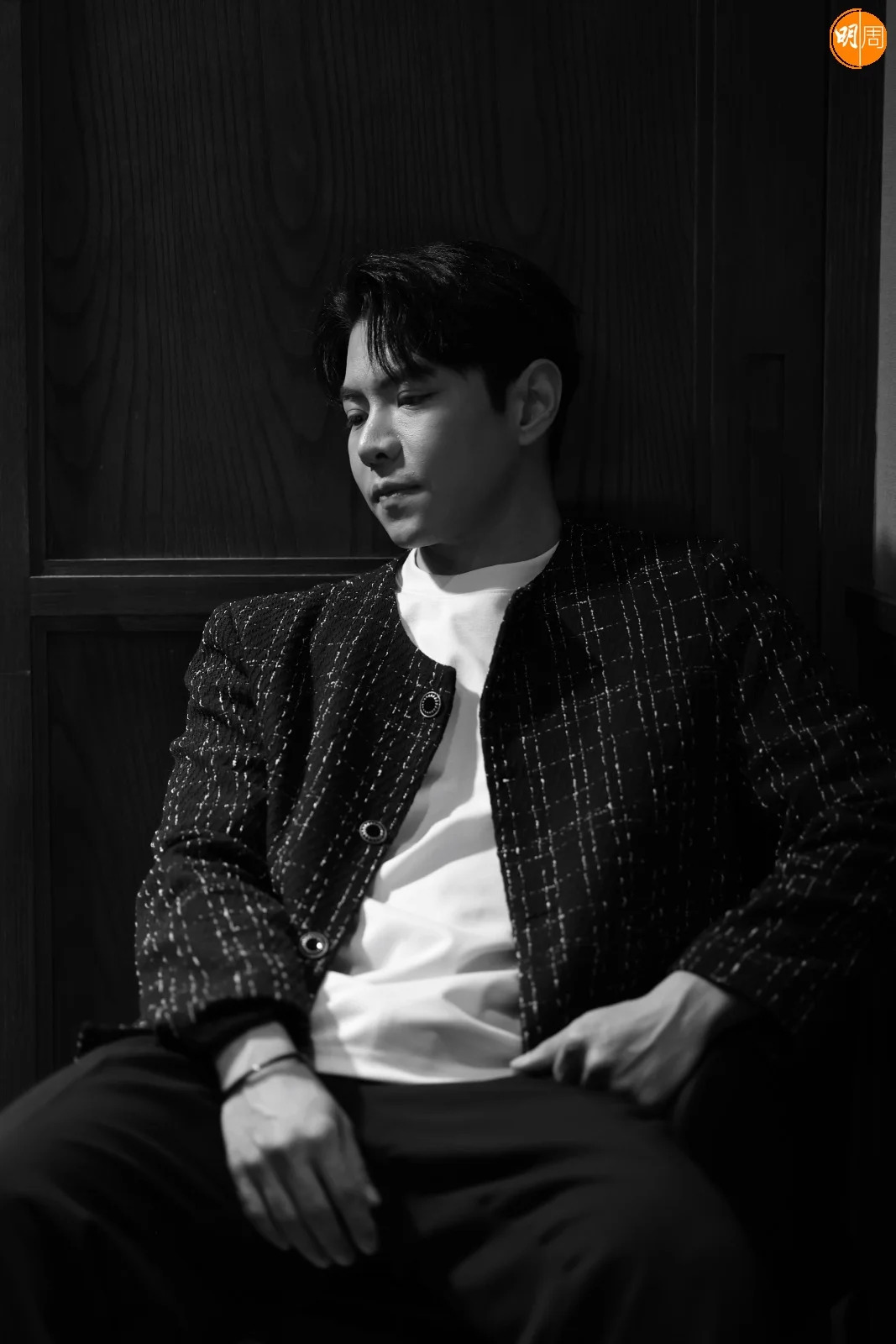 為了營造不修邊幅的形象,他紮了一條辮子,時常穿背心和孖煙囪,穿拖鞋落街,「這個造型不尷尬,但有段時間是疫情關係,流行FaceTime上課或開會,日本就發明了一套西裝,只有前半部分,後面是沒有東西的,方便人們在家裏工作。今次編劇也設計了這件衫給我,有場戲我視像開會途中,突然要衝落街,但穿的是一半西裝,一半孖煙囪,那條街人來人往,真的很尷尬。」