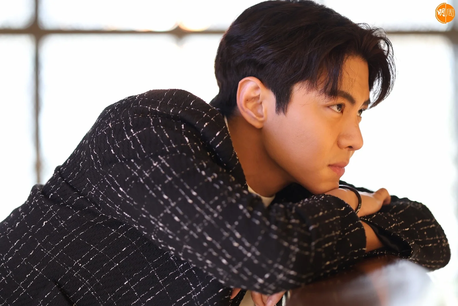 入行十六年,問他自覺有進步嗎?他說:「進步一定有,只是速度不及其他人那麼快,我都一直逼自己進步,想每一方面都做好一點。」《再》劇中,他與黃智雯有感情線,他說合作沒太大壓力,因為大家性格相似,偏向文靜,拍得很舒服,反而跟馬德鐘合作很大壓力,「之前我們拍過劇集《跳躍生命線》,他是我的上司,在演藝上,他也是一個大前輩,加上他的身高、聲線和男子氣概,那個氣場很厲害。劇中我為了保護智雯,跟他有一些對峙,我要將氣場一直推上去,跟他對抗,這些位置要有很大的心理建設,我的信心又要很澎湃,才做到那種可以較量感覺。我望他是要枱高頭,他比我高至少半個頭,我記得有場戲要對望,我要站在木箱上,大家的高度才一致。」