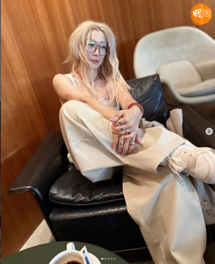 自言夜貓子的鄭秀文唔習慣搭早機,所以要飲杯黑咖啡提神。