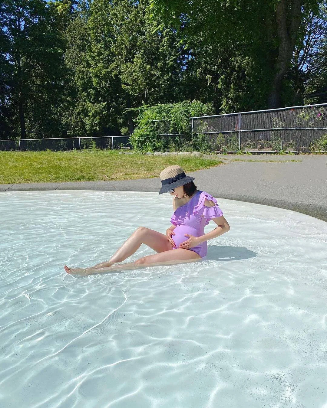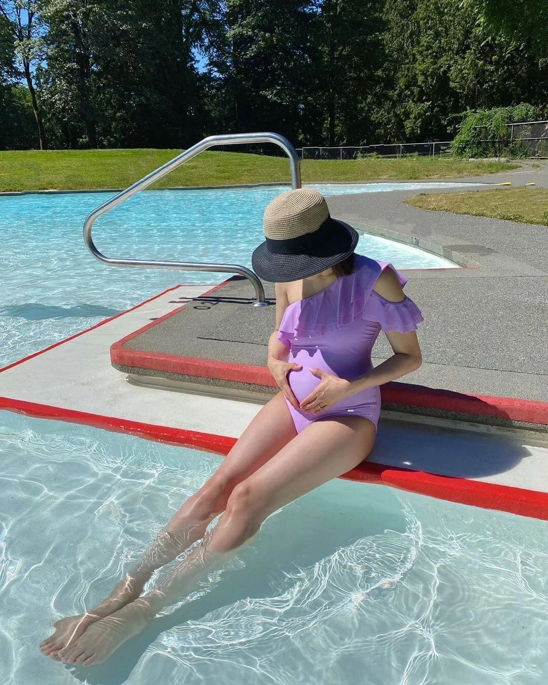 現年38歲的鍾嘉欣(Linda)婚後育有一仔一女,今年4月宣布懷有第三胎。今日Linda在社交網分享三張大肚寫真,相中的她穿上粉紫色泳衣,摸着巨肚面露幸福笑容,見她手腳仍十分纖幼,完全是肥胎不肥人,Linda又留言:「粉紅色或藍色?我已經好愛你(Pink or Blue? I already love you. )」還請大家猜猜BB是個男生還是女生。