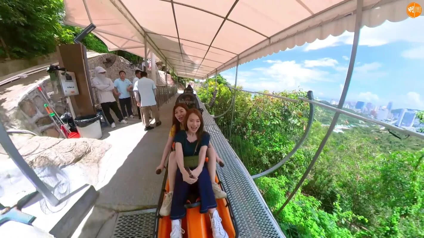 無綫旅遊節目《請1日假去旅行 珠海篇》,今次由兩位閨密蔡潔、吳沚默自駕遊珠海,負責揸車的蔡潔更是首度嘗試「港車北上」。昨晚(20日)一集,首站兩人去到景山公園,乘搭纜車登上山頂挑戰坐衝鋒車落山體驗「極速傳說」,落山期間沚默瘋狂尖叫嗌到拆天。