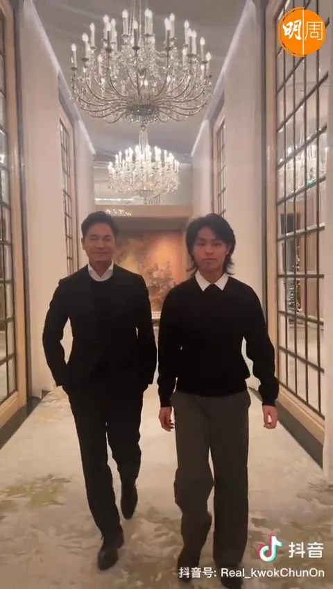 安仔昨日亦在抖音上載與16歲兒子郭令山一齊現身片段,父子雙雙型格亮相,相比起爸爸出鏡經驗,令山難免顯得緊張。穿上白恤衫、毛衣、西褲的令山,身高跟爸爸相若,比較瘦削,留有中長髮,被網民笑指:「郭晉安為什麼能生出黃子華來啊」?更引發網民來個「爸爸比兒子帥系列」。