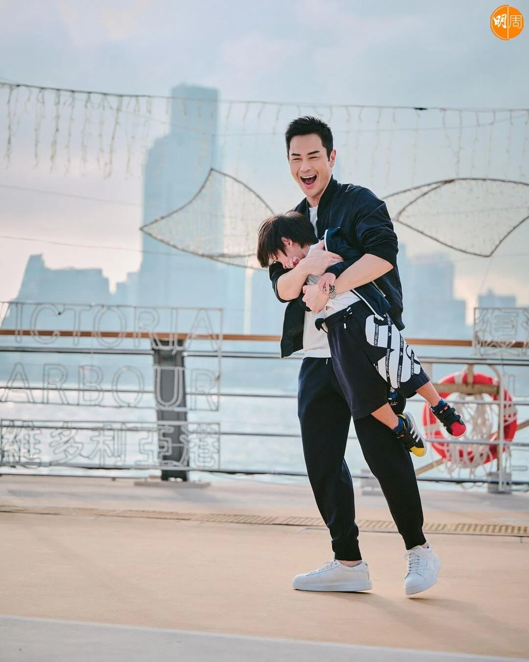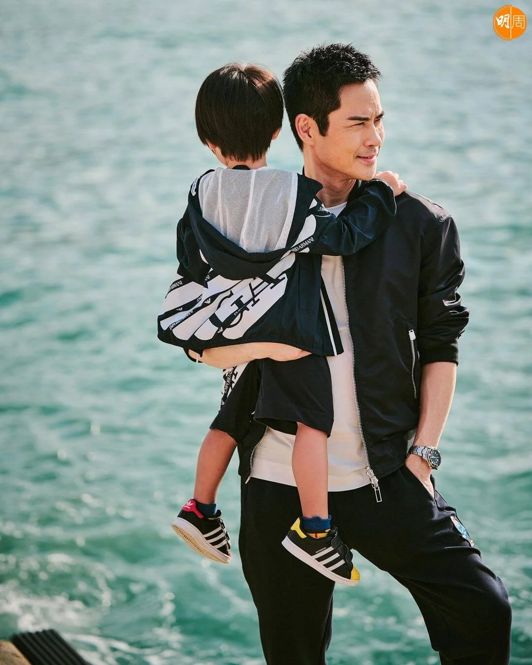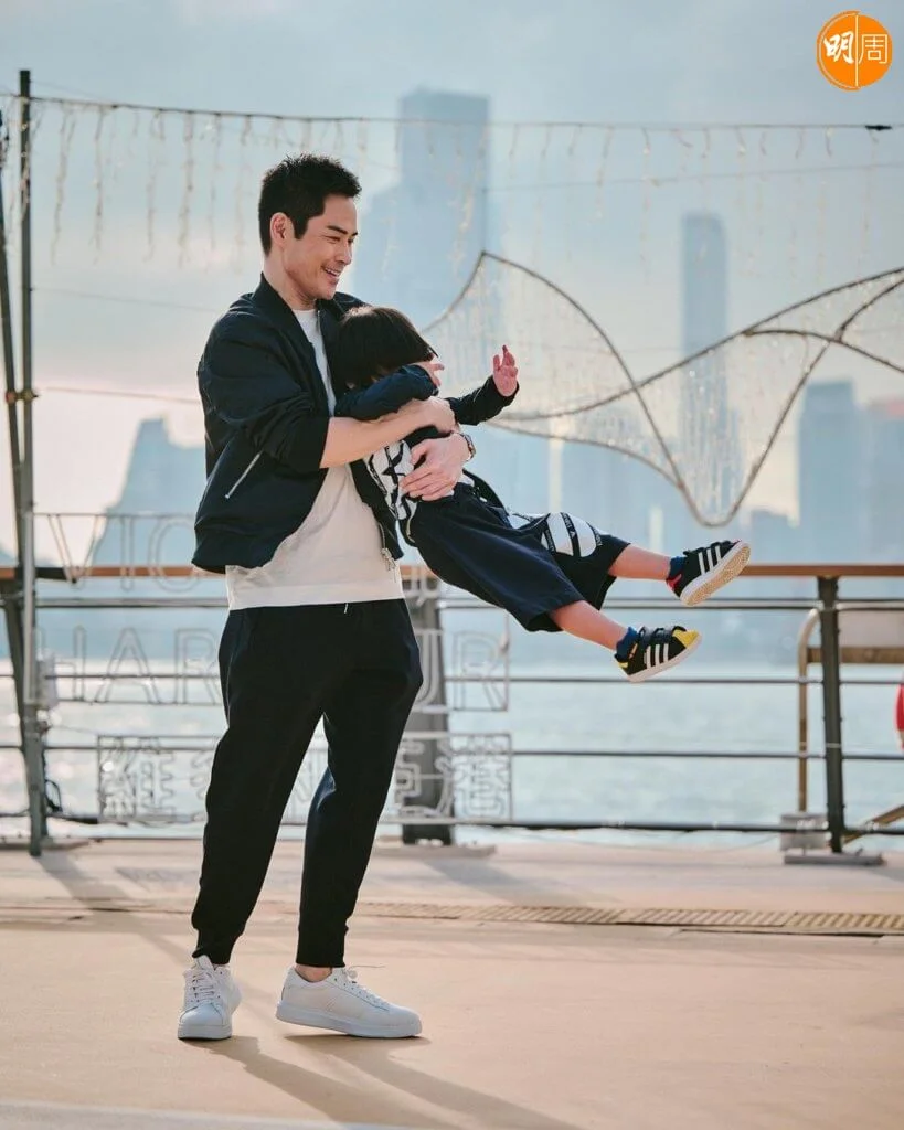 鄭嘉穎的大仔鄭承悅(Rafael)今年已經3歲,個子長高不少,嘉穎時常抽空陪伴兒子,見證整個成長歷程。今天(12日),嘉穎帶同Rafa外出遊玩,又在海濱公園留影,只見他站在海旁,單手抱着Rafa,另一隻手則插進褲袋,Chok爆望海,他說:「唔知抱多幾耐,我就單手抱唔起你啦。大得好快,要珍惜時間,做父母嘅一定明。」