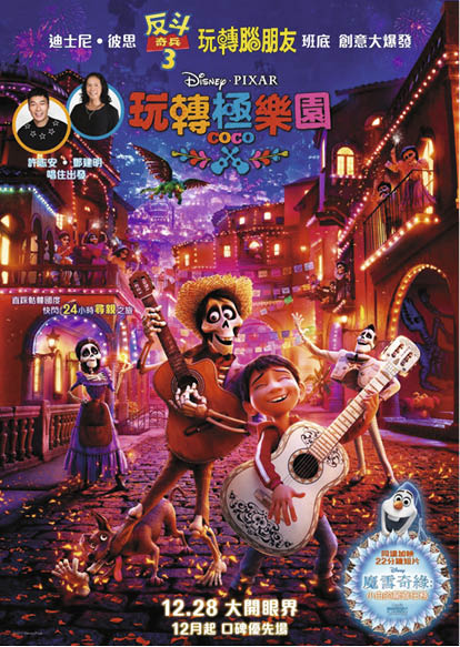 Mi傍晚剛剛看完《Coco》這電影(我向來不是動畫迷),沒想過故事如此有意思和令人感動,能夠將死亡、夢想和親情透過極樂世界扣在一起,而且帶出「捉緊機會」並不寓意要不擇手段去傷害別人抵達成功,這些,都非常有意思。米哥對音樂的熱誠令人血脈沸騰,米哥想追求自己的夢想,相信是很多人的一面鏡子,有時追夢會令人變得勇敢無懼,縱使身邊的人都對自己的夢想存疑甚至反感。為了追夢,米哥遊歷極樂世界也變得不是可怕,電影就是會有這種神奇力量去讓一切構想出來的東西影像化,死亡後的世界在電影裏被化成一座如在地上的極樂之地,當電影畫面出現滿地都是閃爍的燭光燈火,死亡之城即時變成美不勝收的城堡,死亡亦變得不可怕。跟我同行的六歲女孩和我看到中後段都看哭了,我問她為什麼哭得那麼厲害,她說:「害怕阿德會死。」和「害怕米哥不能重返人間。」六歲的小女孩對生和死有了簡單的概念,對阿德的不幸遭遇產生了同理心,亦明白了死亡會帶來分離永別,六歲的女孩哭成淚人。不過,我慶幸故事的結局,充滿了愛與希望,亡靈在極樂能重聚,使死亡多了一重最大盼望。而戲中的亡靈如被在世的人遺忘就會徹徹底底消失,我所相信的《聖經》並不是如此描述死後的世界,不過,不重要,看電影於我來說亦只是娛樂,並不是真正的教育電視。
