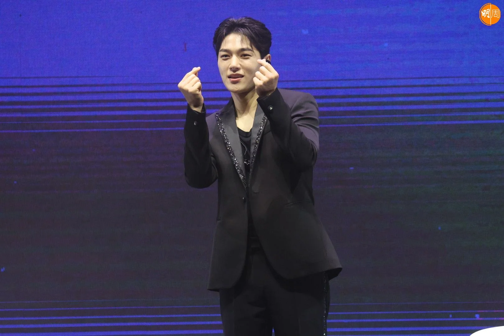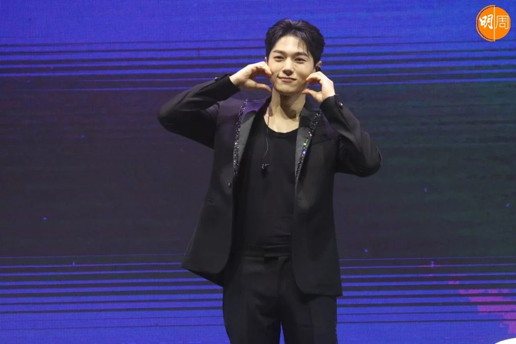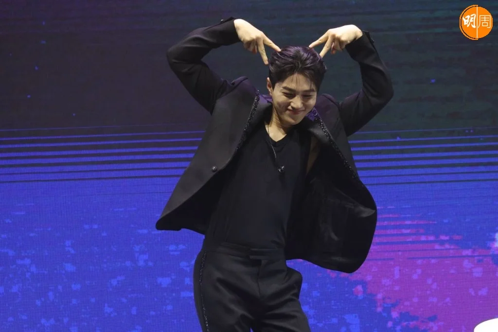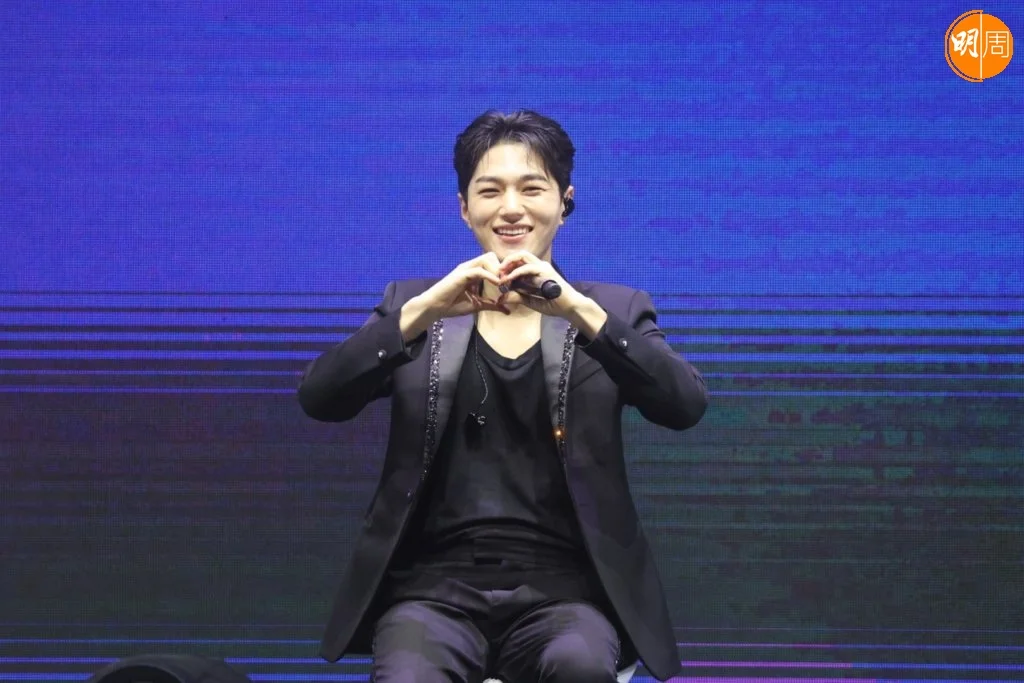 金明洙在見面會上出盡冧功,除了向觀眾比心,又做出不同姿勢的萌樣,相當識做!