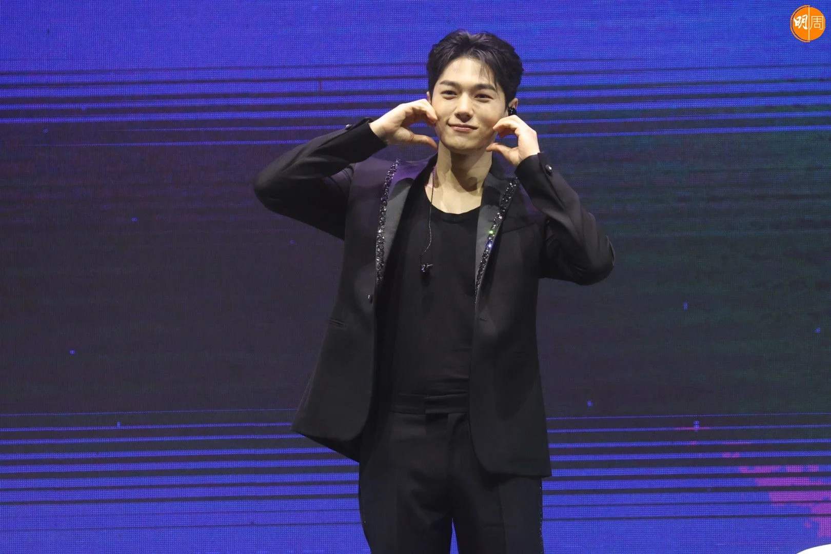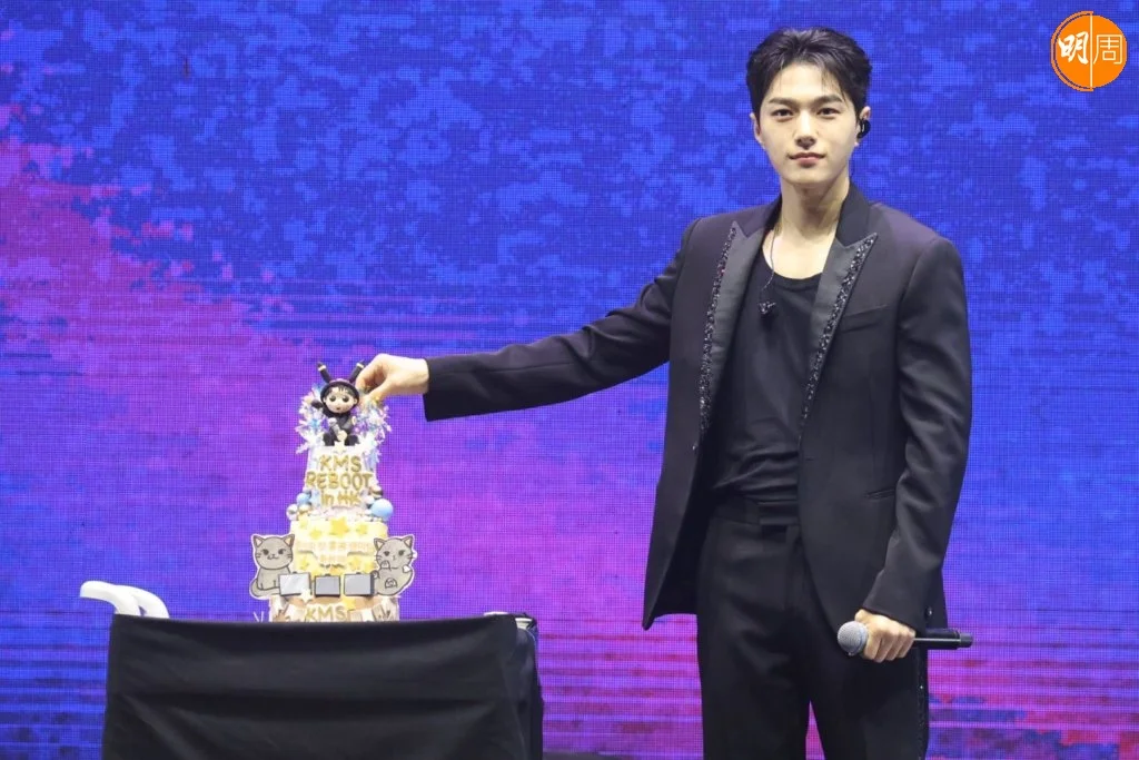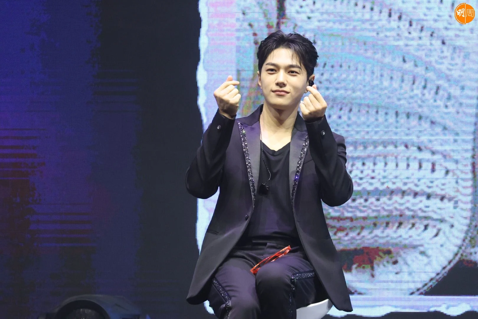 金明洙在見面會上出盡冧功,除了向觀眾比心,又做出不同姿勢的萌樣,相當識做!