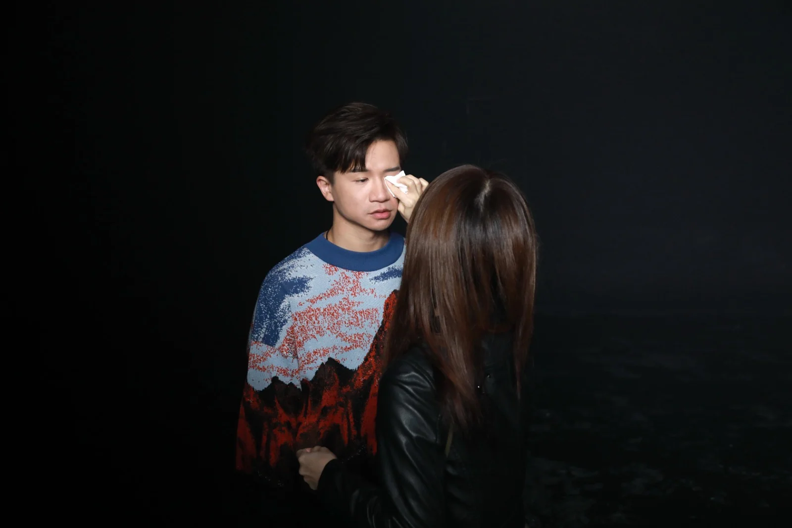 釗峰在新歌《火燒心》MV中,發現女友背着他玩交友apps,感到被背叛,不斷幻想對方與別人親密約會,令他既傷心又憤怒,嬲到一把火燒他們之前甜蜜溫馨的畫作,他傷心流淚。為了拍攝這場流淚戲,釗峰埋位前躲在一旁培養情緒,但因為配合一鏡到底拍攝手法,單是這個鏡頭拍了接近一個小時,結果真眼淚都流乾,要靠滴眼藥水輔助。釗峰笑說:「原本我是真喊,試試勾起一些往事來培養情緒。」問他是什麼往事?他笑說是不會透露,哈哈!「可惜最後沒有用真眼淚那Take,不過都是好好的訓練,當作為8月舞台劇練戲啦!」