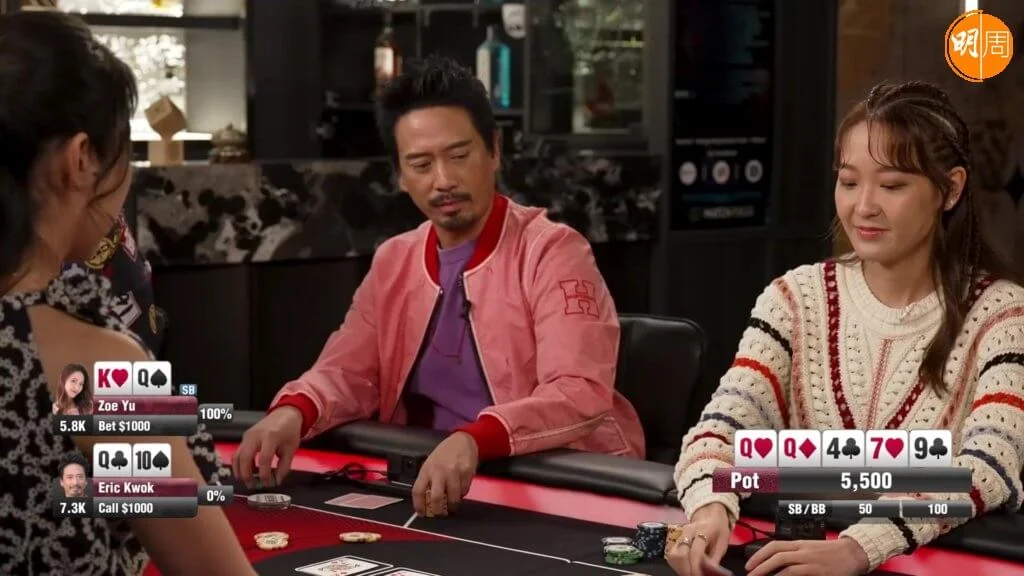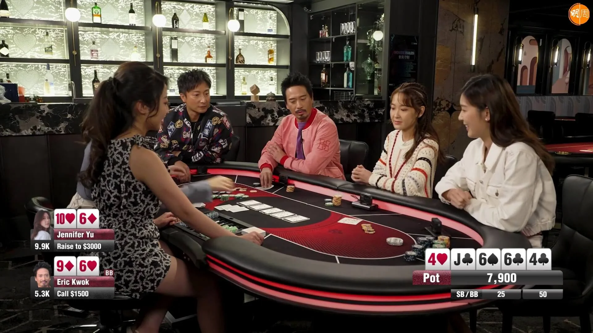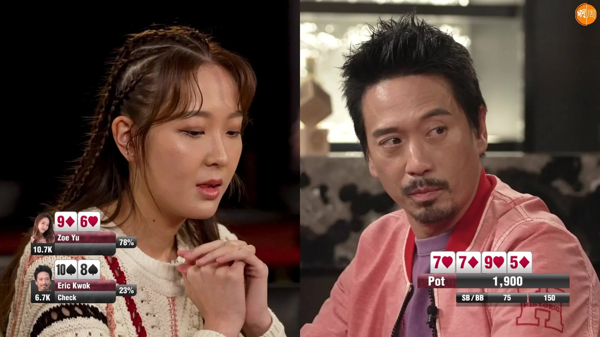 今晚氣氛相當緊張熾熱,未到最終回都未知誰是大贏家,並驚現多局「冤家牌」。見慣大場面的Eric也忍唔住呻:「Zoe好似我剋星咁,我差唔多次次有好牌時,佢都有(好牌)仲要大我少少,因為咁輸咗好多好多籌碼,都幾沮喪。」Eric和小方的大鬥法亦是亮點之一,Eric更已看穿小方「技倆」:「佢嘅小動作我已經知道晒,佢呃唔到我囉!」