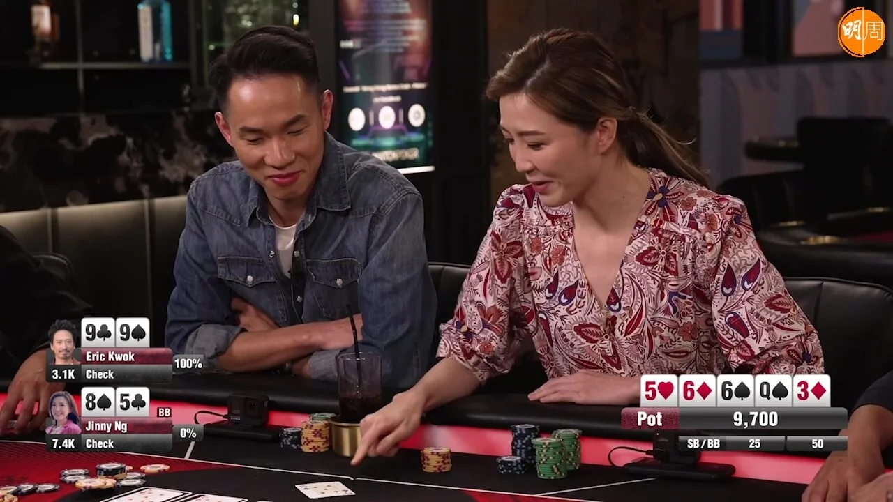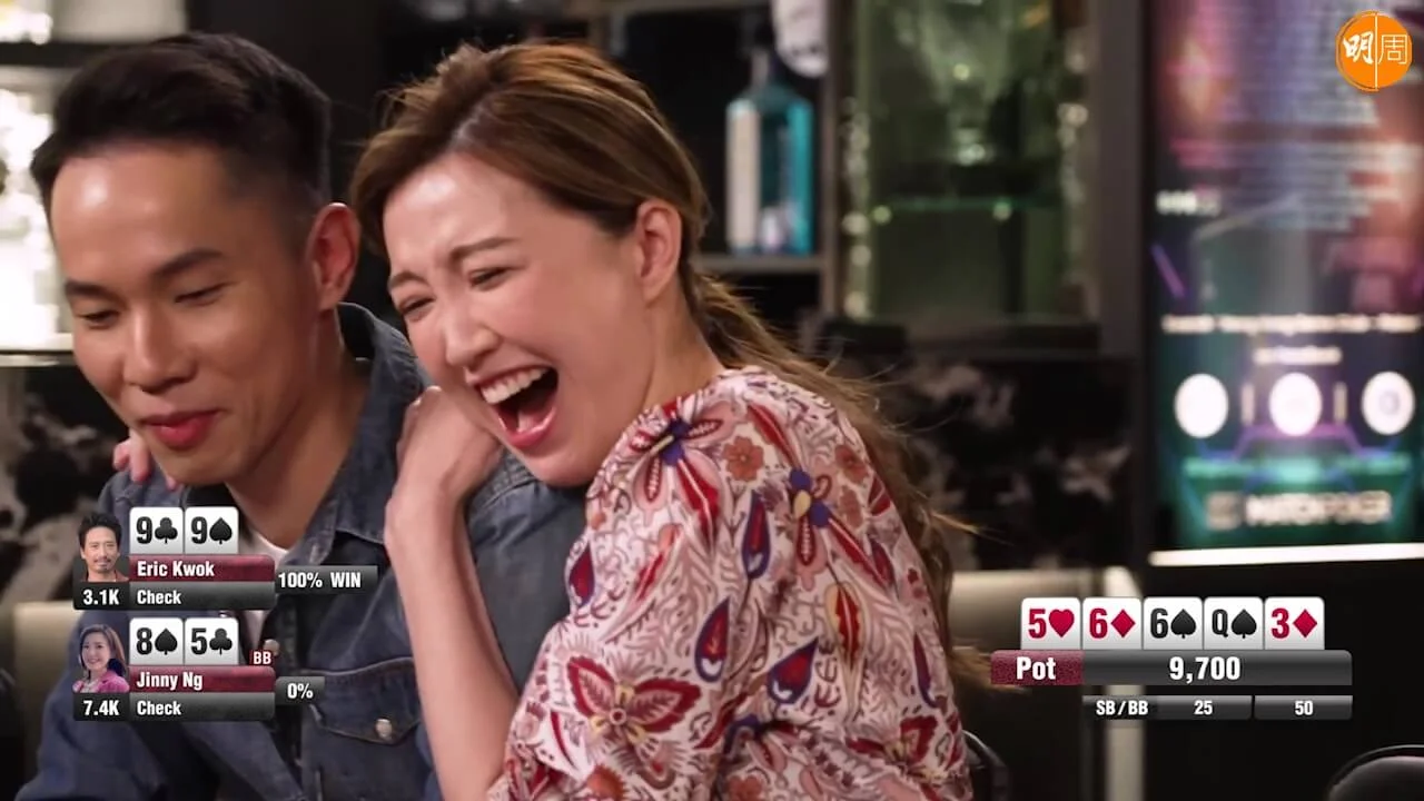 由郭偉亮(Eric)、方力申及陳欣茵主持的無綫J2節目《鋪鋪Poker》,本周六(13日)播出的最新一集,除了繼續有葉佩雯(Grace)與Eric大耍花槍外,接力的吳若希(Jinny)與老公Alex上演「爛賭夫+爛賭妻」。出名「虎妻」的Jinny,去到Poker枱竟由上靶變下靶,除了遭Alex無限「負評」及「白眼」,更無論手持爛牌或是好牌,都遭老公一眼睇穿。