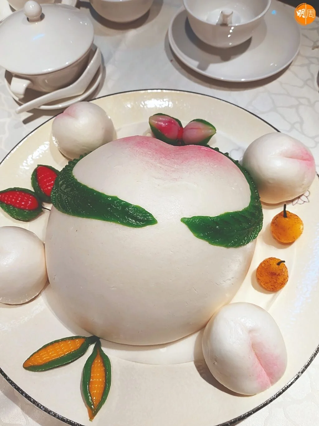 參加別人的祝壽宴,賀壽的壽桃以雷霆萬鈞之勢登場。大家唱到走晒音都繼續唱:「恭祝你福壽與天齊,慶賀你生辰快樂,年年都有今日,歲歲都有今朝,恭喜你!恭喜你!」它們的身份是道具多於食物本身;面對拳頭那麼大的原隻壽桃,有人勉為其難的現場吃,咬兩啖便放下的大有人在,又有人說把它帶回家作早餐、午餐或下午茶來吃,有幾多人會守「諾言」?吃不下就是吃不下,的而且確俗語有云:「身體最誠實。」(筆者按:賀壽時食的是「壽桃」,並不是「壽包」)