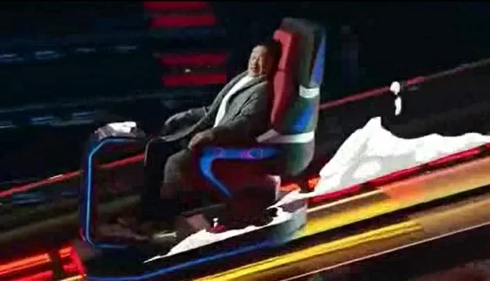 《中國新歌聲》今次的導師陣容有陳奕迅、周杰倫、那英和劉歡,不過未開播已經相當有「火藥味」。一向古靈精怪的周杰倫將比賽環節最重要的道具導師戰車當成了整蠱道具,嚴肅的比賽現場險些變成「車禍」現場。從片段中可見,周杰倫先把陳奕迅騙上「戰車」,然後叫工作人員將車速加快,幾乎嚇到陳奕迅「花容失色」。