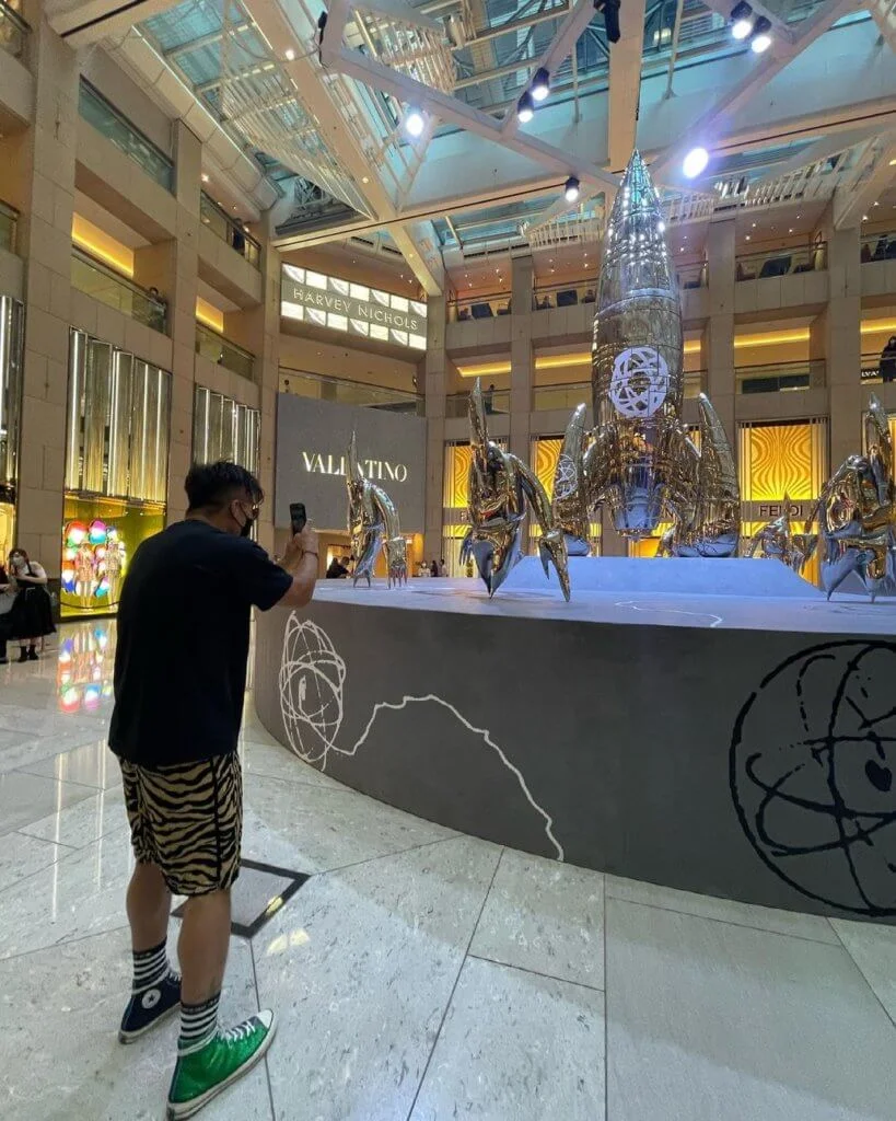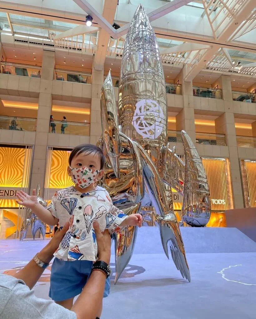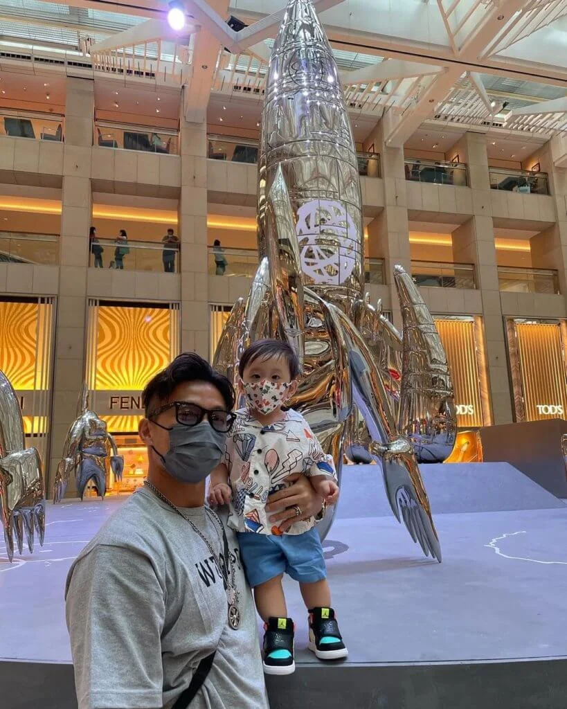 早前傳奇藝術家FUTURA來港舉行藝術展《FUTURALAND》,走在潮流尖端的陳山聰已率先到置地廣場潮聖。今日(06/06),他趁老婆Apple放假,一家三口再度參觀藝術展,與囝囝一起朝聖,讓他從小培養藝術氣息。Jaco穿着帥氣,戴着口罩,跟藝術品合照,非常可愛。