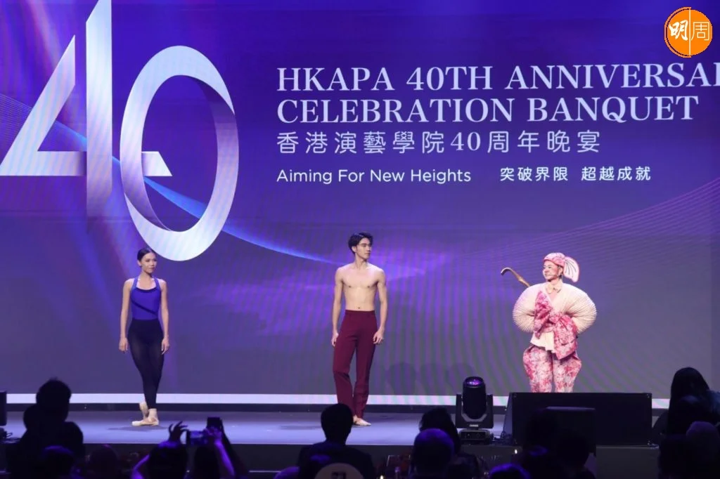 演藝學院四十周年校慶晚宴以「突破界限 超越成就」為主題,氣氛熱烈。校長陳頌瑛教授親自擔綱學生表演的藝術指導,帶領演藝學院學生獻上精彩絕倫的演出。首段「中西融合」,體現香港作為中外文化交匯樞紐的獨特魅力,由戲曲學院與音樂學院學生以悠揚歌聲揭開序幕。承蒙文化體育及旅遊局局長羅淑佩女士鼎力支持,並以特邀嘉賓身分驚艷參演,為晚宴特別呈獻經典粵曲《昭君出塞》,伴以戲曲學院學生現場伴奏,將全場氣氛推向高潮。