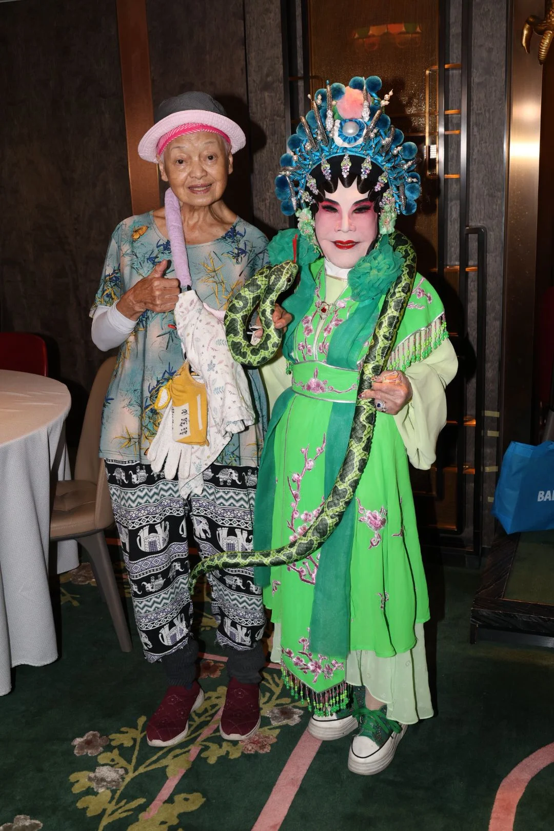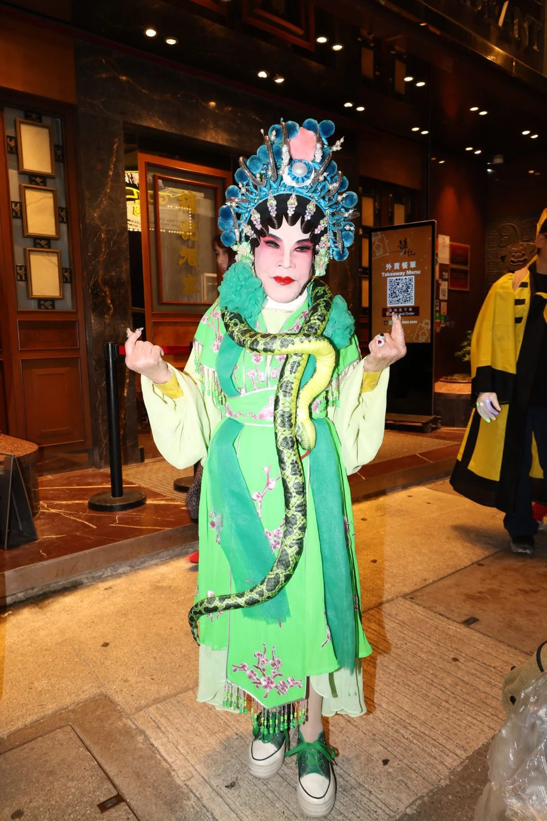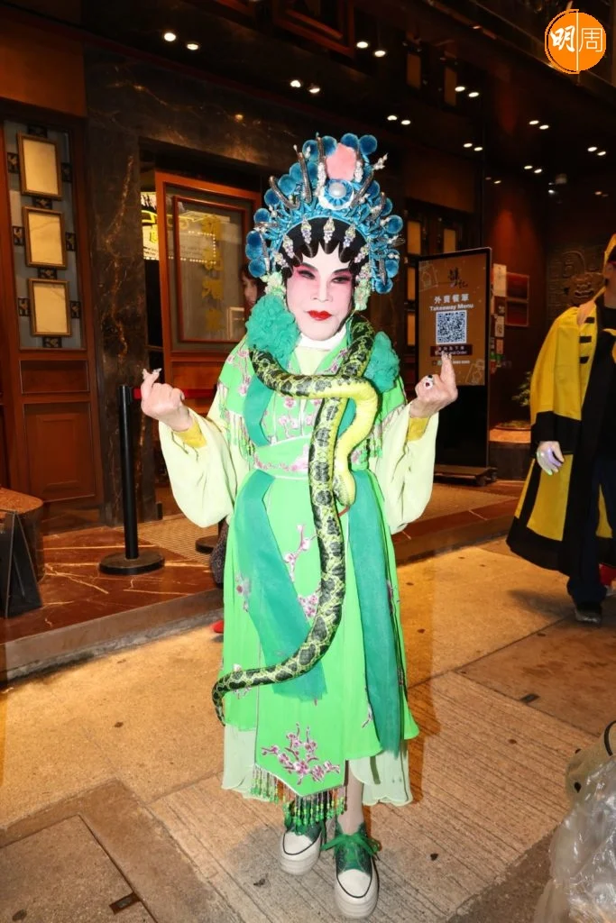 昨晚(31日)萬聖節,黃夏蕙再度出動,以一身青蛇造型驚艷亮相中環蘭桂坊,吸睛度十足。她先與徐寶鳳、魏秋樺、周潤發胞姊周聰玲等好友聚餐,提早慶祝下周二(11日)其92歲生日,飯後再轉往蘭桂坊與人群狂歡,心情大靚。