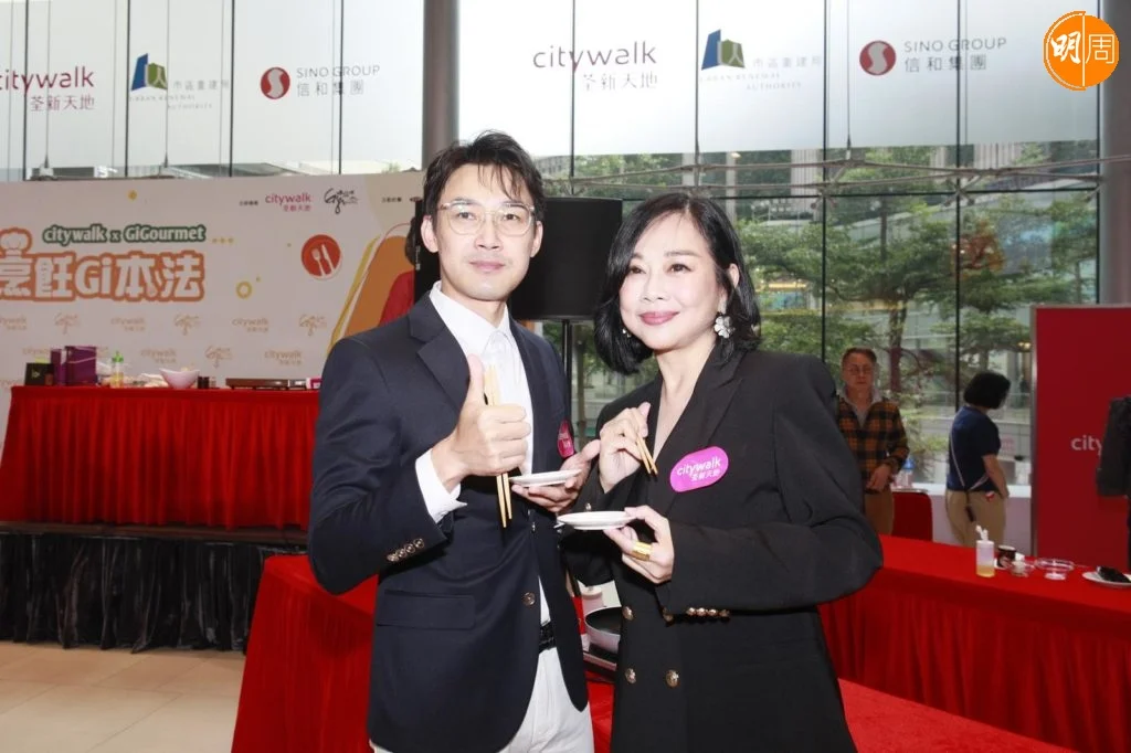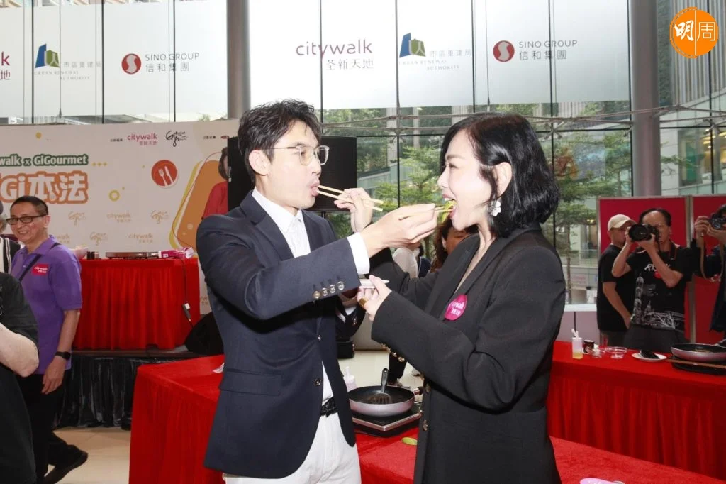陳松伶很認同食譜夠「貼地」,並大讚Gigi姐的新著作簡直就是天書,「除了貼地,我更加喜歡食譜是以卡的形式推出,想煮甚麼菜就拿出來放在廚房,非常方便,又不容易弄髒。」松松席間又與老公張鐸互相餵對方試食烹飪比賽參加者所煮的菜式,非常甜蜜。