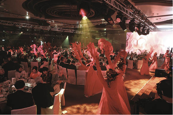 仙姐九十大壽,,在洲際酒店筵開四十二桌,冠蓋雲集,超過五百個賓客來為她祝壽。