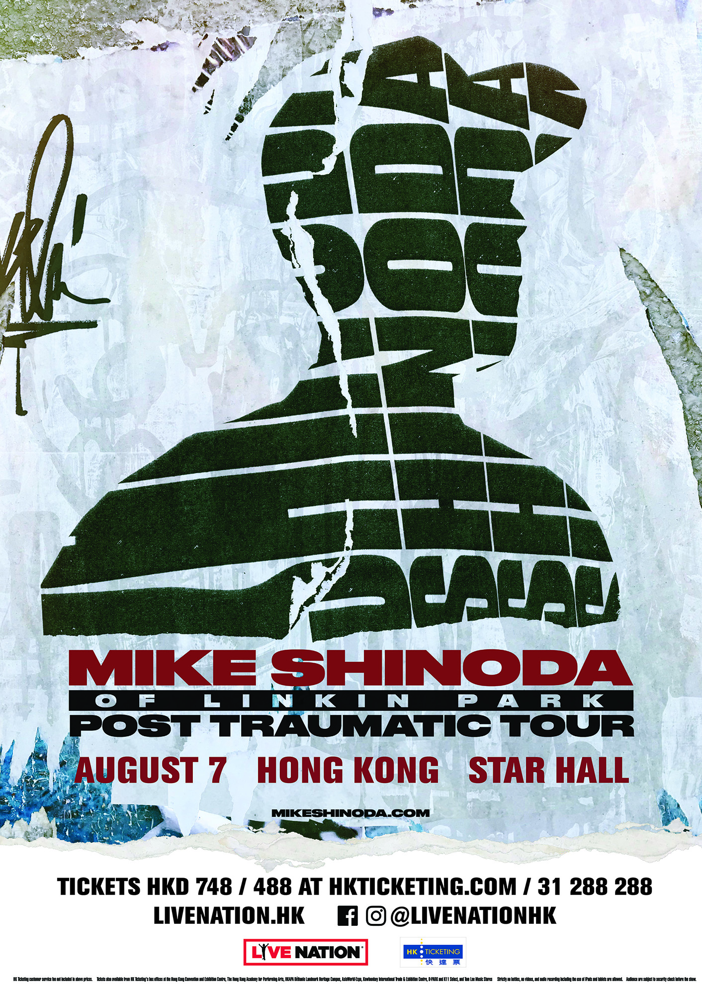 美國Nu-Metal樂隊Linkin Park的主音Chester Benningston去年7月自殺逝世,震驚全球樂迷,樂隊隊長Mike Shinoda今日在twitter公布8月7日會在九龍灣國際展貿中心匯星首次以個人身份舉行演唱會MIKE SHINODA POST TRAUMATIC TOUR,將演繹他即將推出的全新個人專輯《Post Traumatic》當中關於創傷後遺的作品。