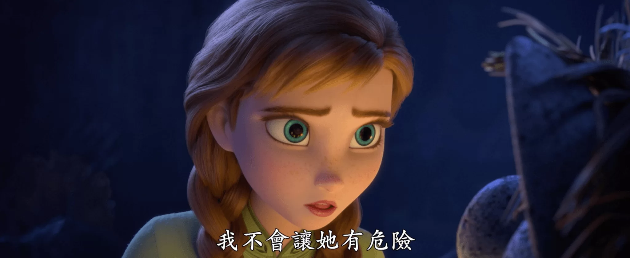 Elsa將前往北方找尋自己力量的真相,佩比又表示:「但你一定要小心,我們都很恐懼艾莎的力量對這世界來說太巨大了,我們希望這些力量已經夠了。」最後Anna勇敢地說:「我絕對不會讓她(艾莎)發生任何事!」顯現姊妹情深的一面。