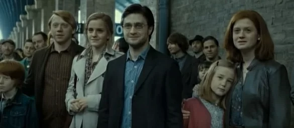 《哈利波特》系列雖然有不少令觀眾傷心的場面,但最後結局都是十分歡樂,在最後一集,哈利消滅佛地魔。而且和和榮恩妹妹金妮結婚生下兩子一女,榮恩和妙麗一家也是羨煞旁人。兩對夫妻帶著各自的兒女來到九又四分之三月台,準備搭火車送子女去霍格華茲學校上學。這個幸福滿程度爆登的場面,當然是要入選在經典場面之中。